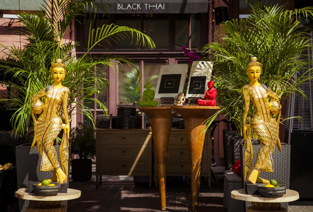 РЕСТОРАНУ BLACK THAI УДАЛОСЬ СОЗДАТЬ В САМОМ ЦЕНТРЕ ШУМНОЙ МОСКВЫ ЗЕЛЕНУЮ И УЮТНУЮ ВЕРАНДУ, ПОД ПАЛЬМАМИ КОТОРОЙ ПРИЯТНО ПРОВОДИТЬ ВРЕМЯ В ЛЕТНИЙ ЗНОЙ.