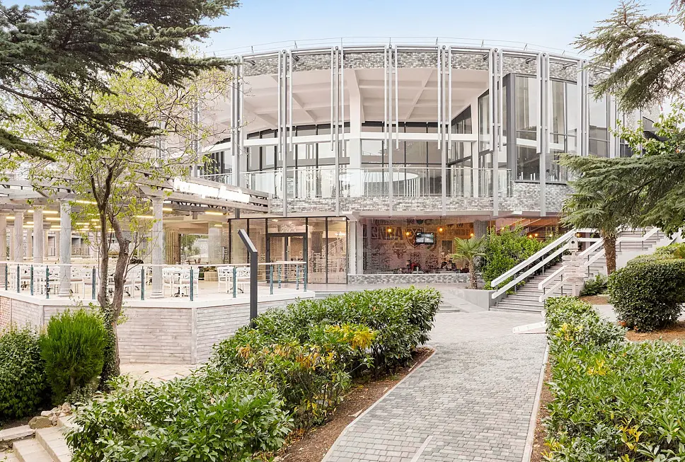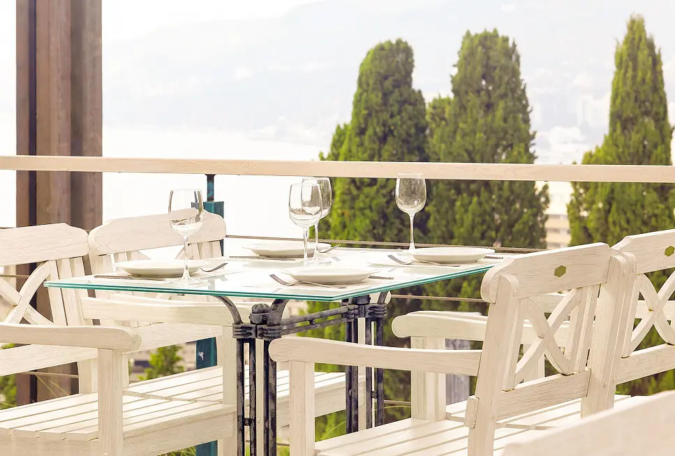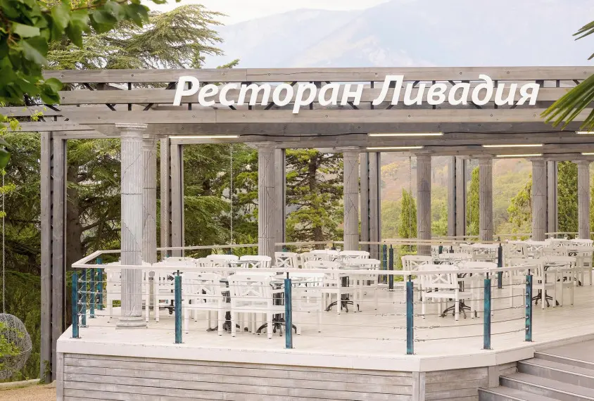 Ресторан «Ливадия» находится на живописной территории Green Park отеля Yalta Intourist. Он окружен вечнозелеными экзотическими деревьями, имеет летнюю террасу. Кресло, скамейка и стол, входящие в коллекцию Dakota имеют превосходный, стильный, но в тоже время легкий дизайн. Изделия выкрашены в античный белый, нейтральный цвет, благодаря чему они будут очень эстетично смотреться и в зеленом саду, и в помещениях.