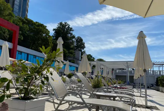 Pullman отели премиум-класса французской компании Accor. Настоящее удовольствие от освежающего морского бриза и захватывающего вида на море. Зонтик от солнца Andria. Функции запуска и наклона.
