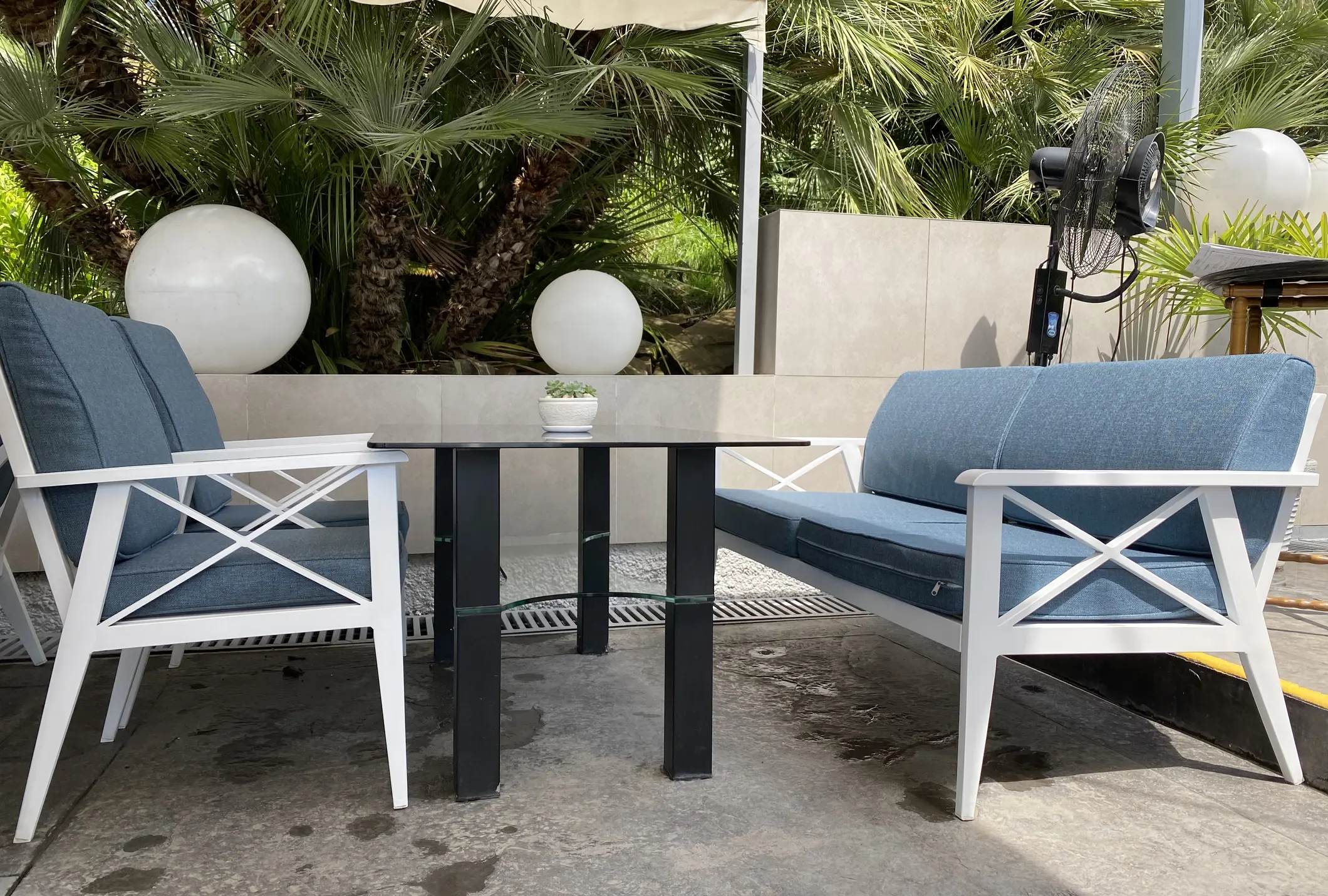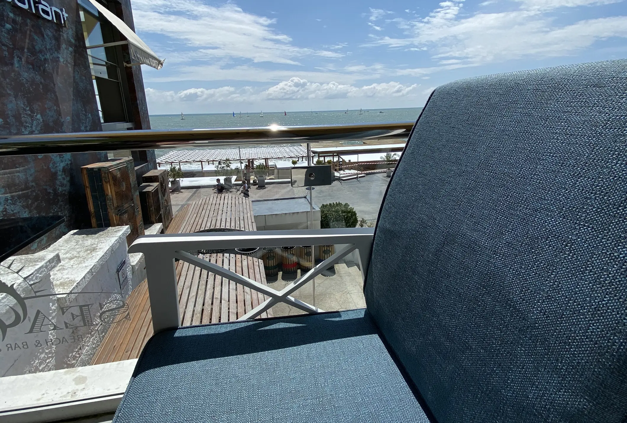 По-настоящему легкий летний рыбный ресторан на самом берегу - плеск волн и магия закатов. Классический дизайн - вдохновленный вечной мебелью с отголосками архипелага. Белая алюминиевая группа с красивыми формами, такими как крест сзади, сужающиеся ножки и подушки из олефиновой ткани в новом полуночном синем цвете.