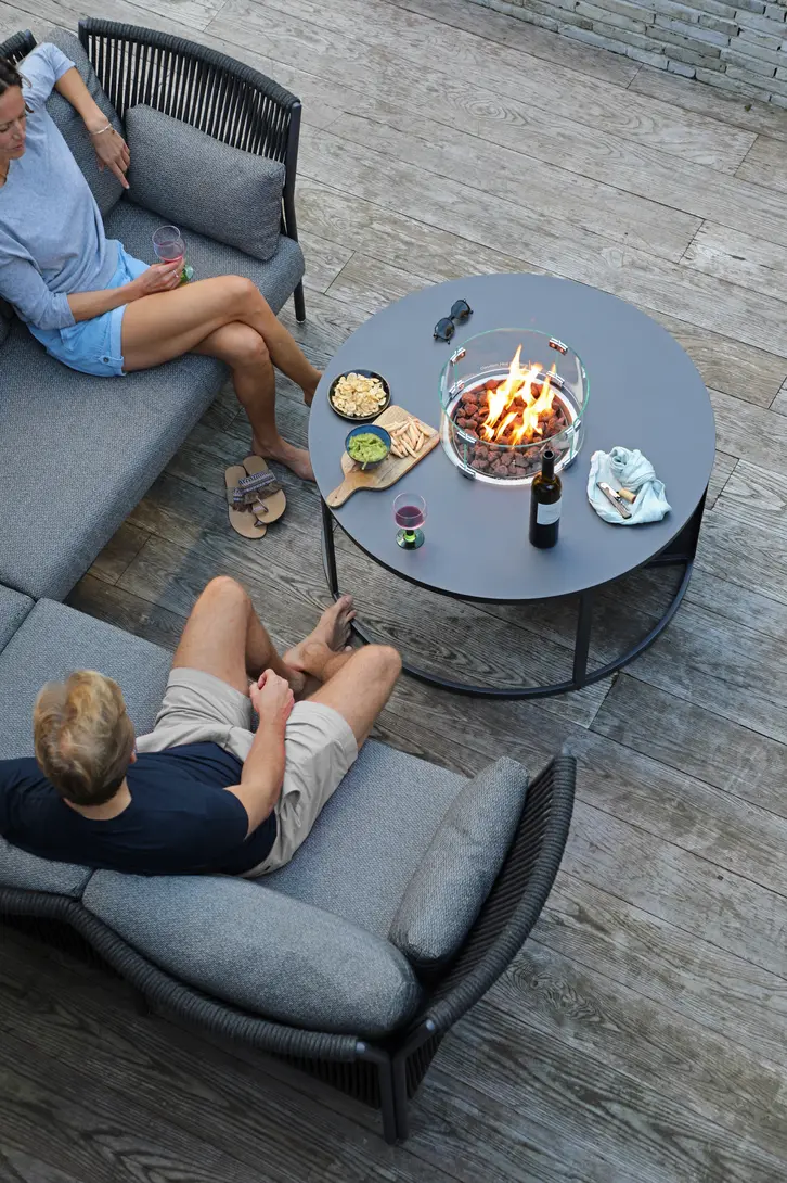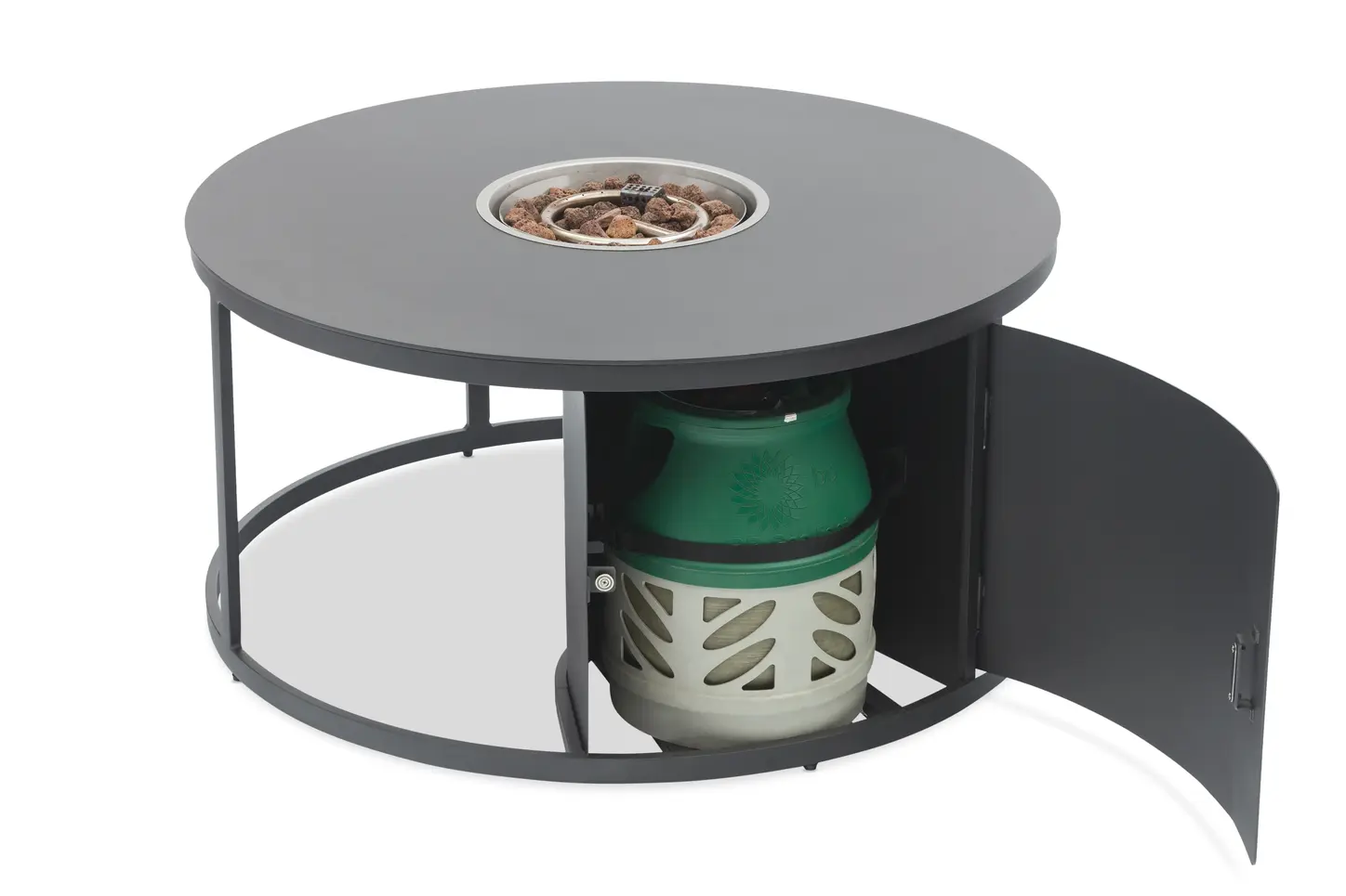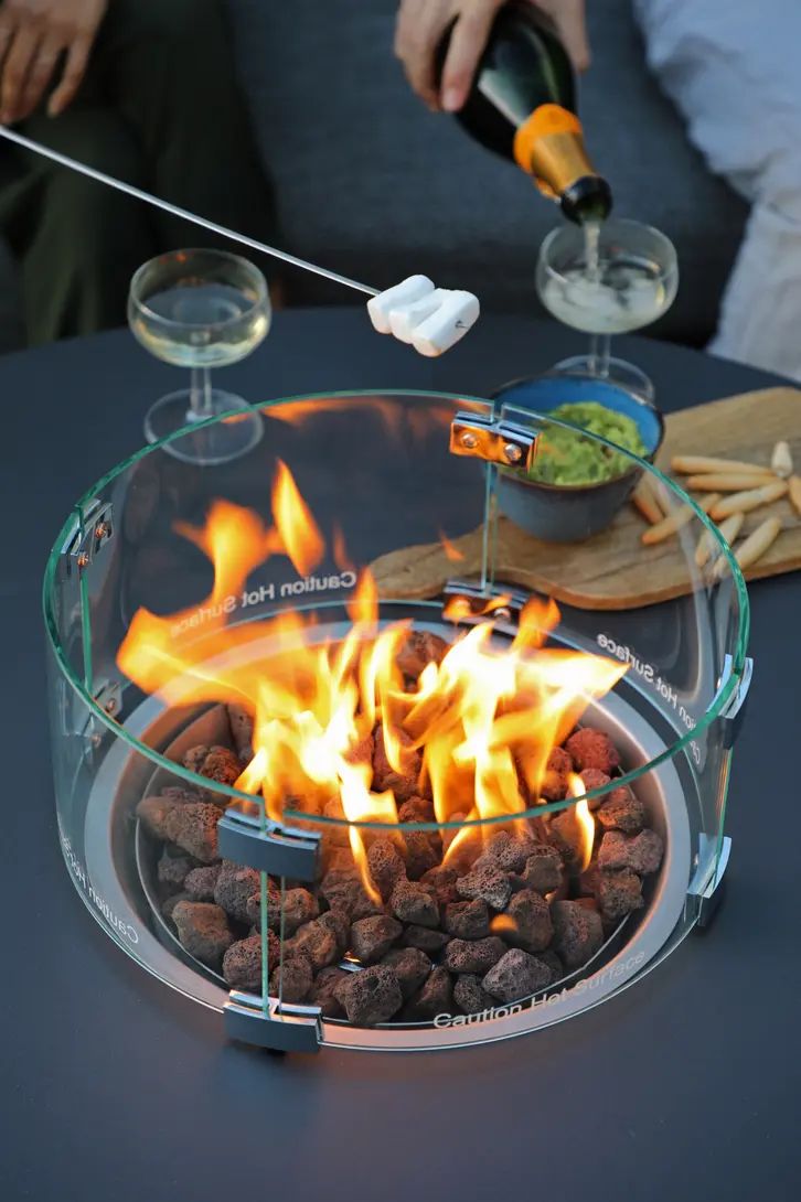 Столы Orebro обеспечивают высококачественную функцию камина с современным дизайном стола. Эти каминные столы создают теплую атмосферу на любом открытом пространстве и позволяют хранить стандартный баллон с пропаном непосредственно в основании стола. Алюминиевая рама с алюминиевым верхом. Работает со стандартными газовыми баллонами, полностью сертифицированными по безопасности в соответствии с правилами техники безопасности ЕС. Защита от ветра из закаленного стекла. Ручное зажигание, со свечой зажигания под столешницей. Отделение для газового баллона. Гриль для барбекю на раме из нержавеющей стали- в комплекте круглая сковорода диаметром 30 см, 1,5 кг лавового камня.
