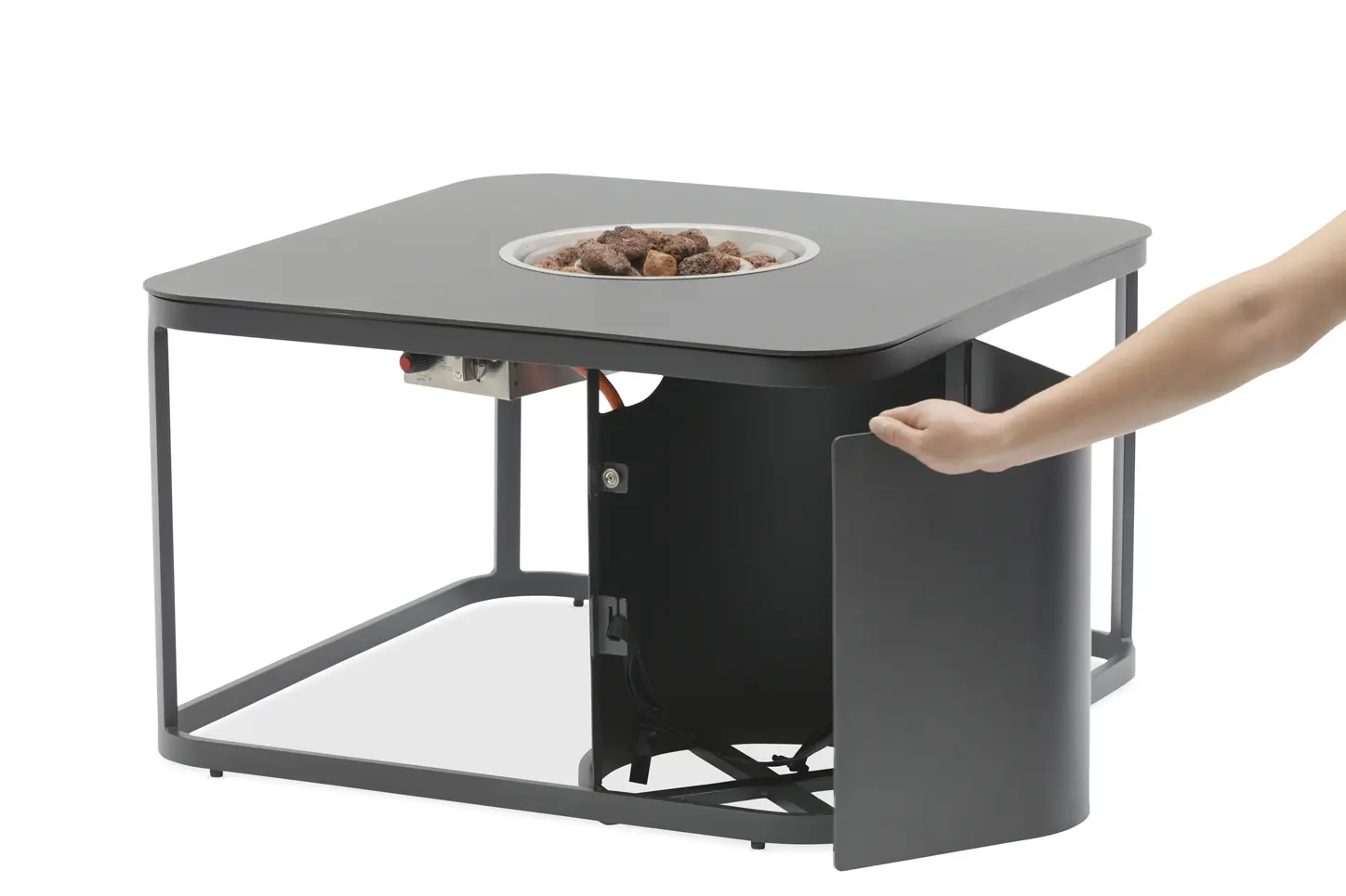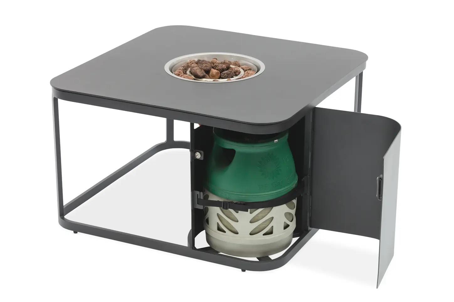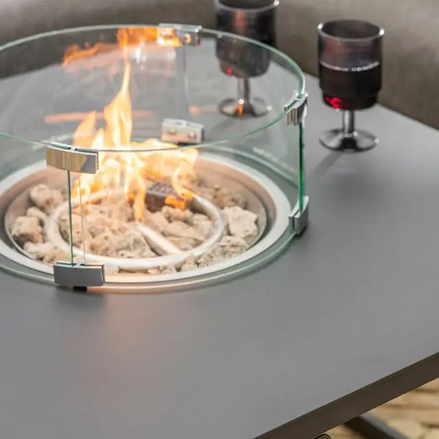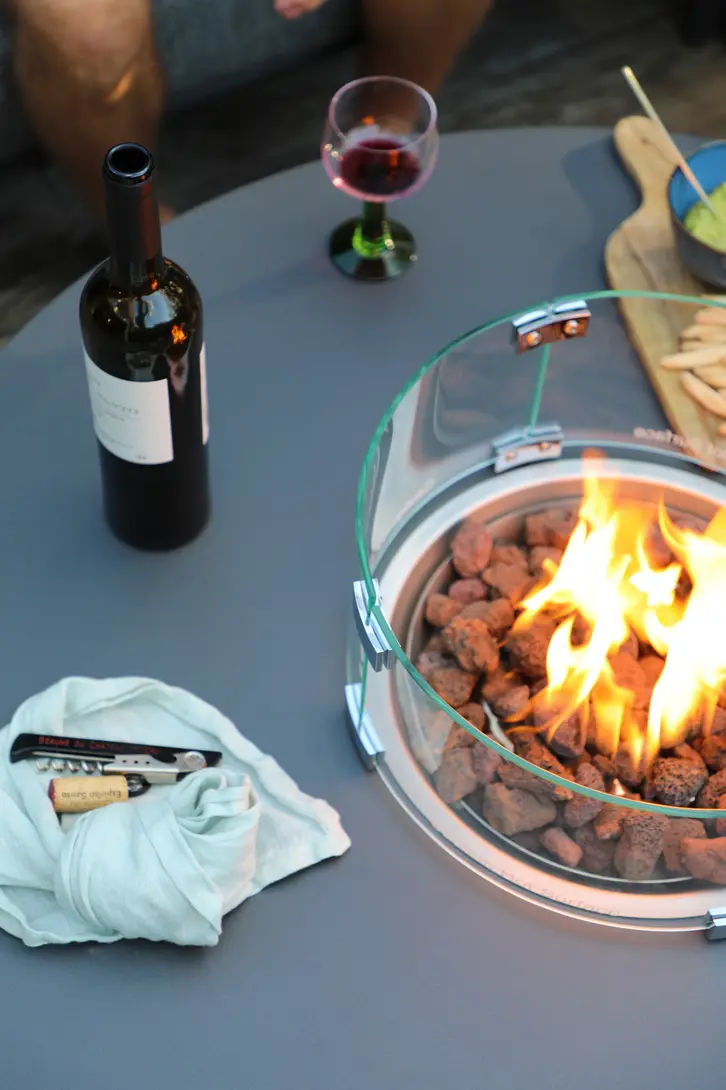Столы Orebro обеспечивают высококачественную функцию камина с современным дизайном стола. Эти каминные столы создают теплую атмосферу на любом открытом пространстве и позволяют хранить стандартный баллон с пропаном непосредственно в основании стола. Алюминиевая рама с алюминиевым верхом. Работает со стандартными газовыми баллонами, полностью сертифицированными по безопасности в соответствии с правилами техники безопасности ЕС. Защита от ветра из закаленного стекла. Ручное зажигание, со свечой зажигания под столешницей. Отделение для газового баллона. Гриль для барбекю на раме из нержавеющей стали- в комплекте круглая чугунная сковорода диаметром 30 см, 1,5 кг лавового камня.