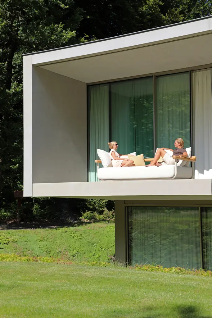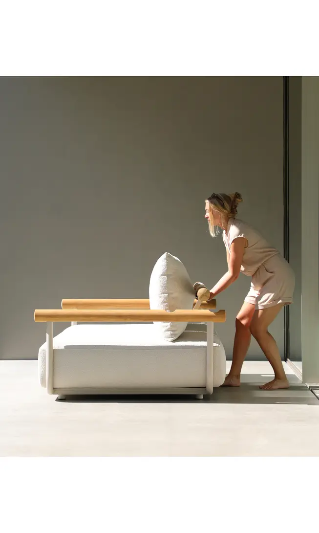 Поднимите круглую спинку и переверните ее. Подушки смещаются вместе с ней, мгновенно создавая более глубокое и удобное сиденье — идеальное для чтения, непринужденной беседы или кофе у бассейна.