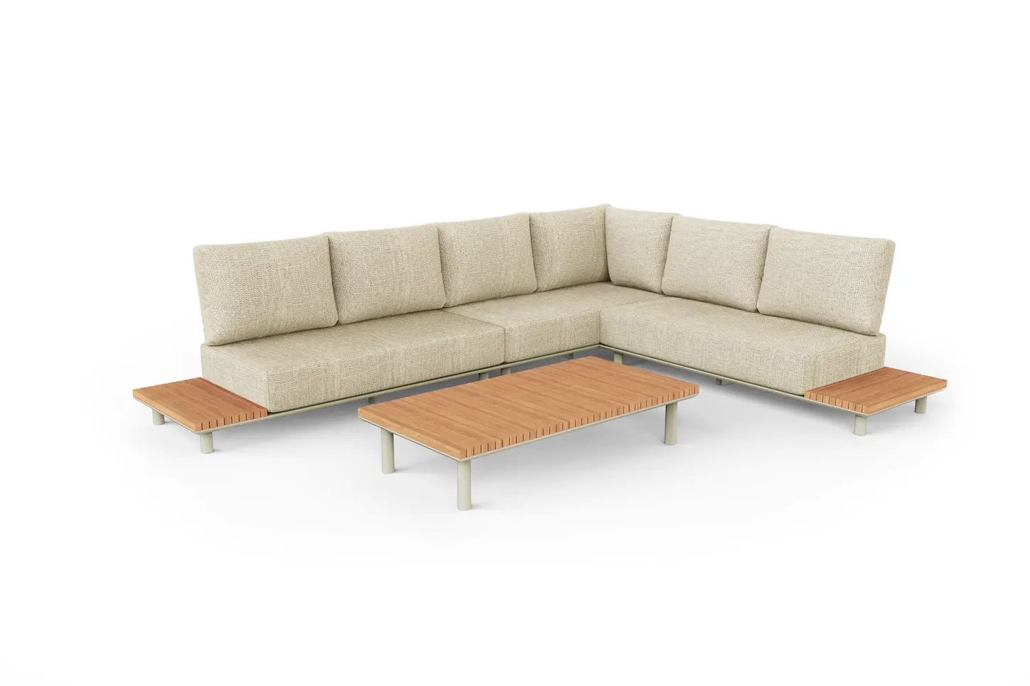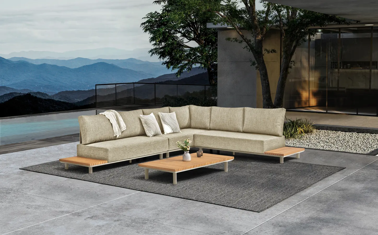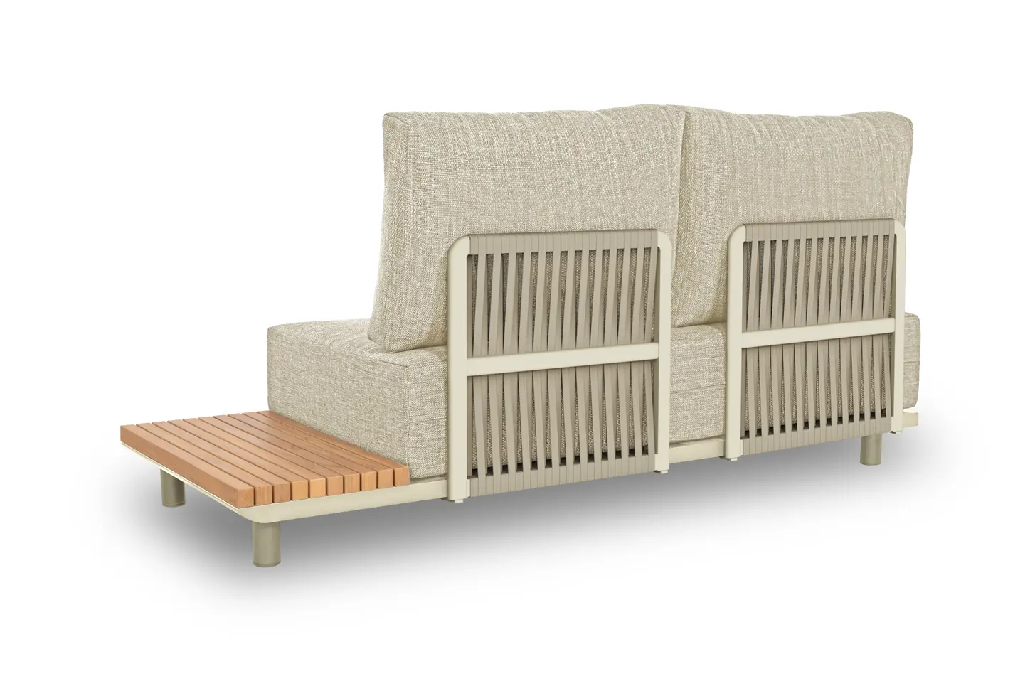Набор имеет гладкую алюминиевую раму, а столешницы сделаны из тика. Роскошные подушки толщиной 22см, чехлы изготовлены из высококачественной, водоотталкивающей и устойчивой к погодным условиям ткани Sunproof®olefin