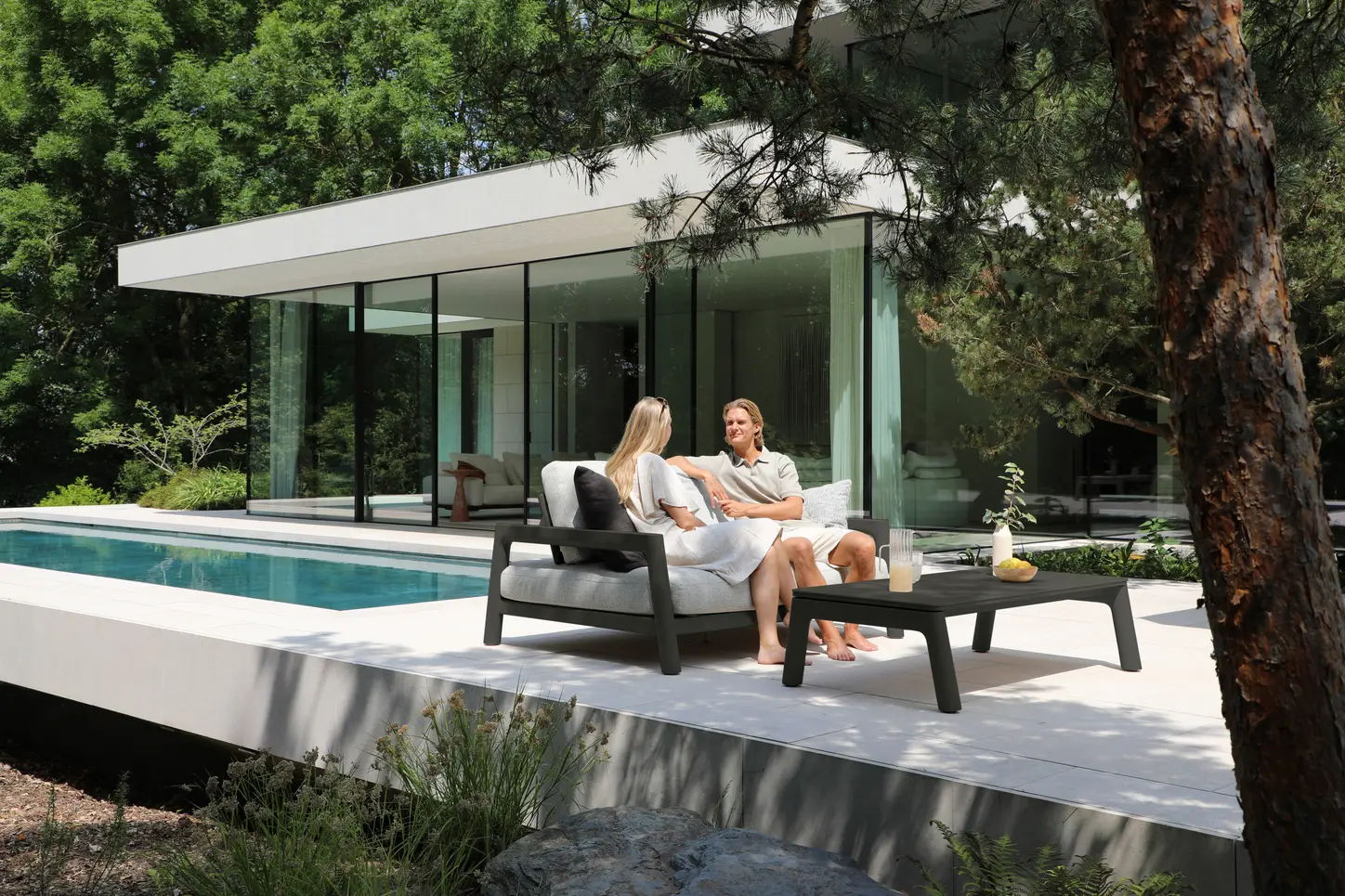 Поднимите круглую спинку и переверните ее. Подушки смещаются вместе с ней, мгновенно создавая более глубокое и удобное сиденье — идеальное для чтения, непринужденной беседы или кофе у бассейна.