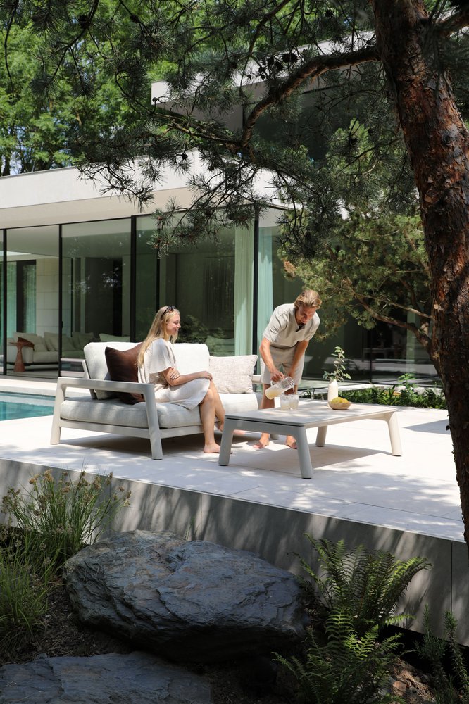 Поднимите круглую спинку и переверните ее. Подушки смещаются вместе с ней, мгновенно создавая более глубокое и удобное сиденье — идеальное для чтения, непринужденной беседы или кофе у бассейна.