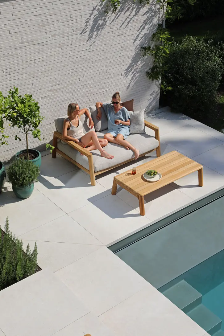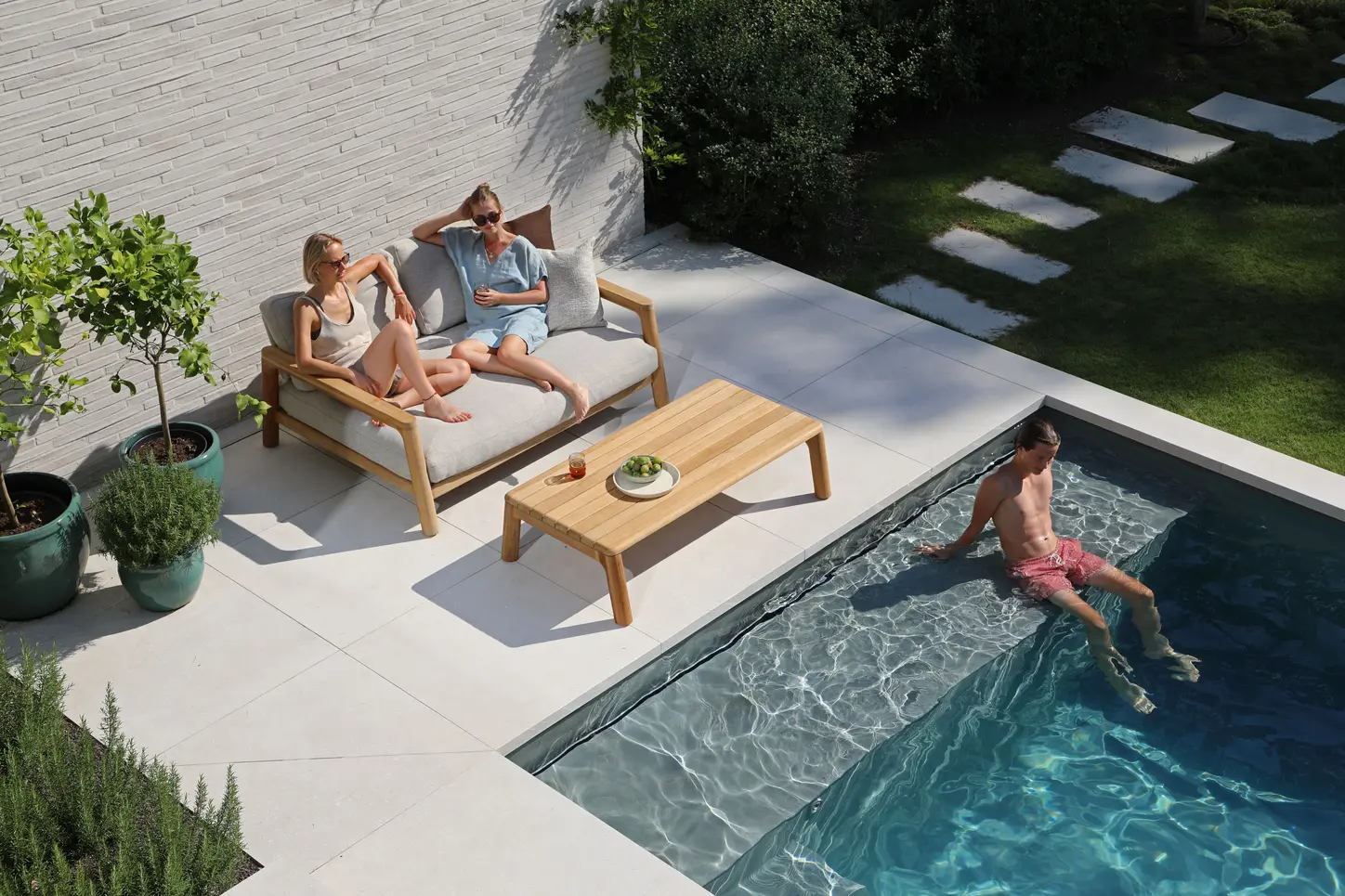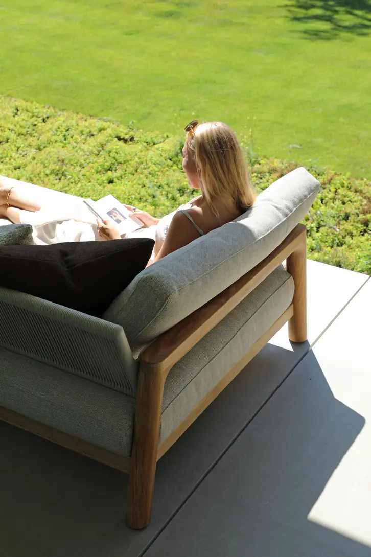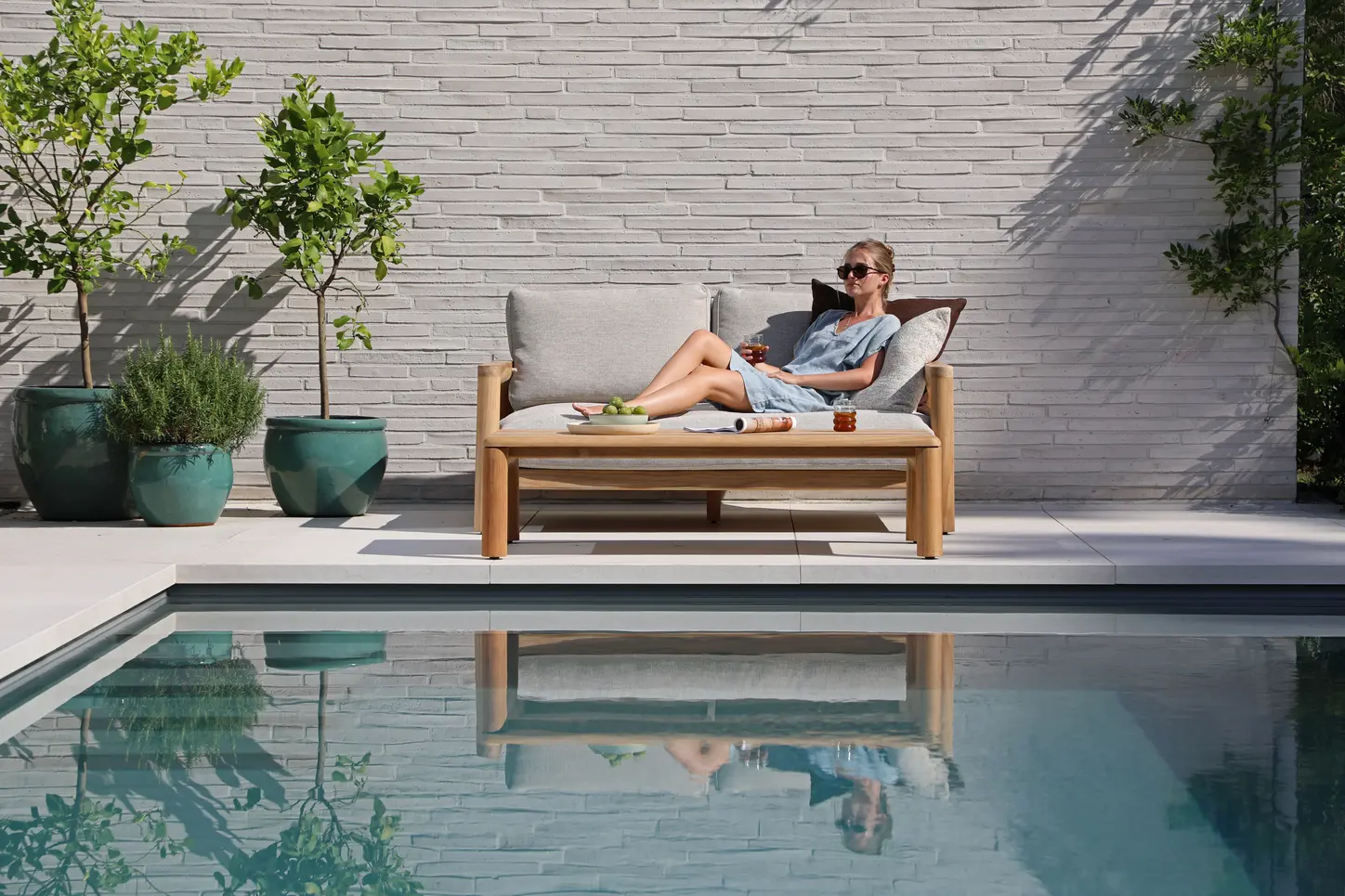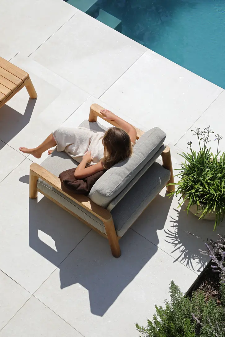 Поднимите круглую спинку и переверните ее. Подушки смещаются вместе с ней, мгновенно создавая более глубокое и удобное сиденье — идеальное для чтения, непринужденной беседы или кофе у бассейна.