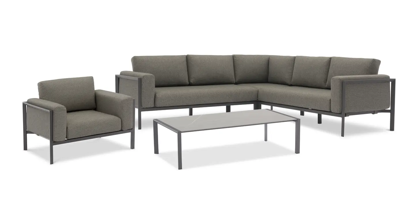 Stockholm— роскошная серия с бесконечными возможностями комбинаций. В нем есть все, что вам нужно, чтобы построить красивую, удобную гостиную зону в вашем собственном стиле. Ткань подушек- олефин (водостойкая, устойчива к ультрафиолетовому излучению), столешница - керамика, ламинированная стеклом