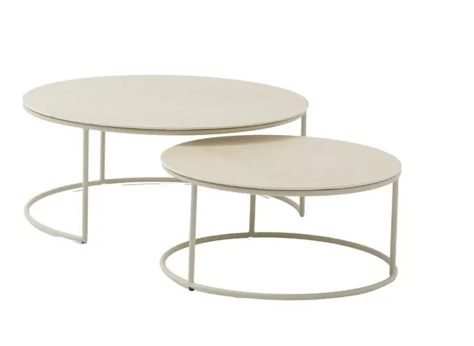 Комплект парных столиков из алюминия бежевого цвета с коричневой керамической столешницей. Столешница изготовлена из закаленного стекла с керамической печатью. Керамическая печать – уникальная технология воспроизводства на стекле полноцветных изображений. Керамическая печать устойчива к ультрафиолету, изображение не выцветает со временем, не царапается при механическом воздействии, не смывается агрессивными химическими веществами.