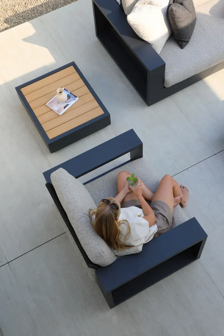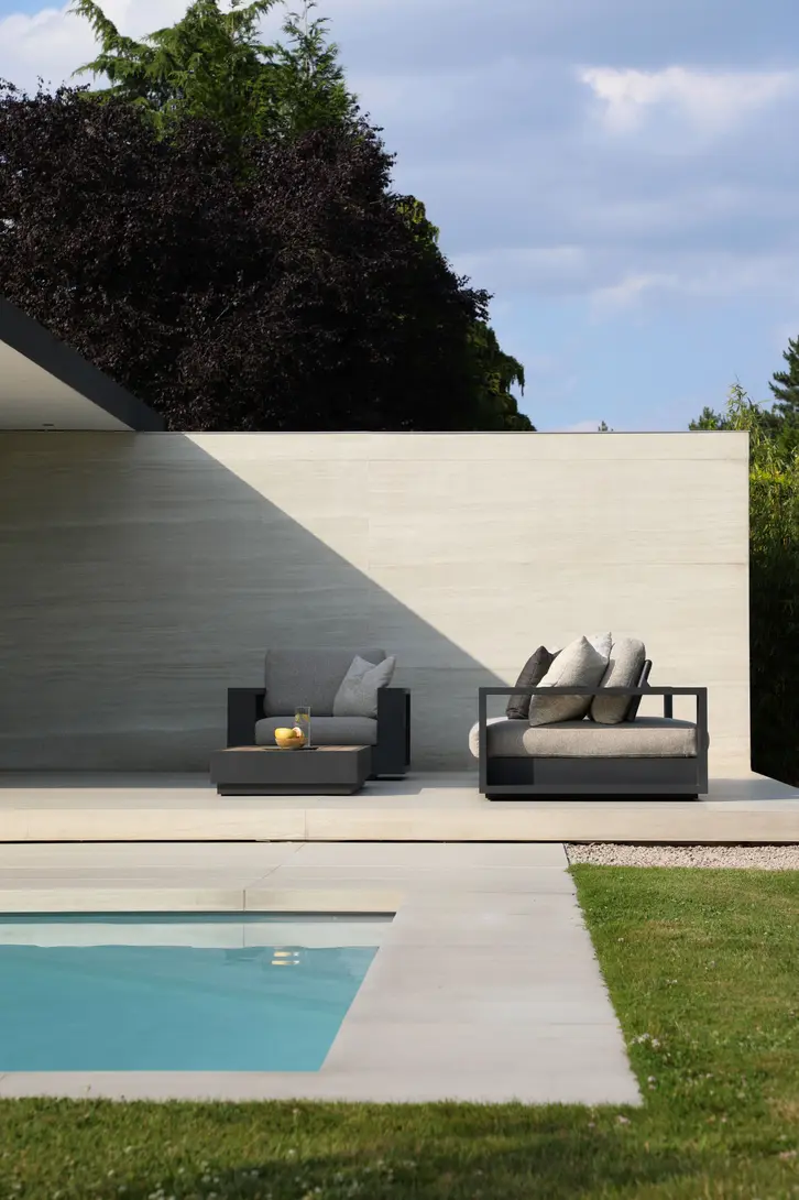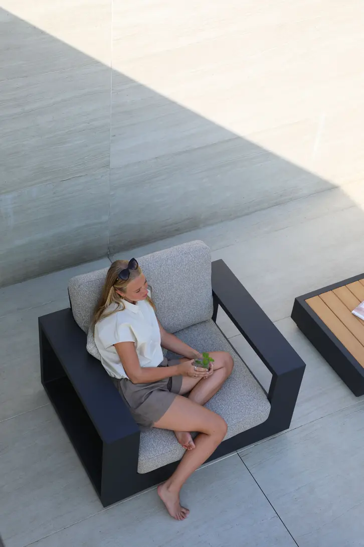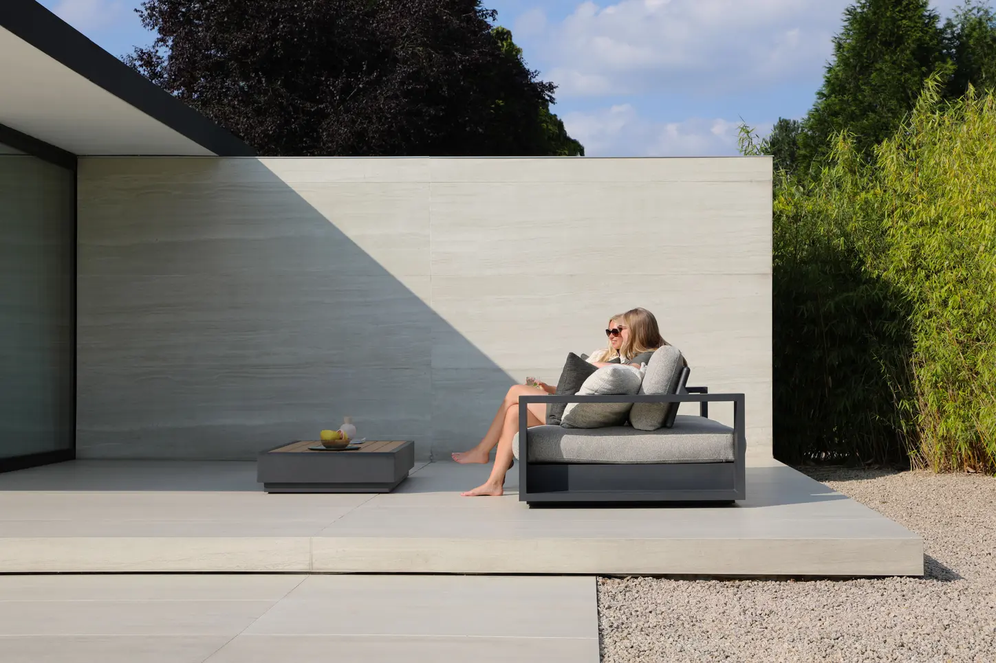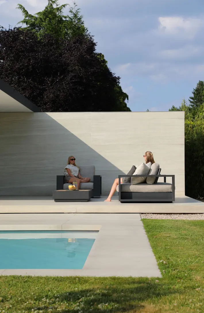 Поднимите круглую спинку и переверните ее. Подушки смещаются вместе с ней, мгновенно создавая более глубокое и удобное сиденье — идеальное для чтения, непринужденной беседы или кофе у бассейна.
