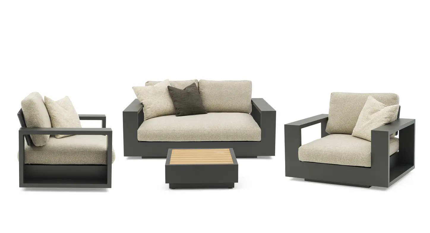 Комплект состоит из 2-х местного дивана, 2-х кресел и журнального столика. Запатентованная трансформация вашего дивана. Просто поднимите спинку и поверните ее, чтобы перейти из положения обычного сидения в положение глубокого. Отрегулируйте положение подушек, чтобы создать зону отдыха.