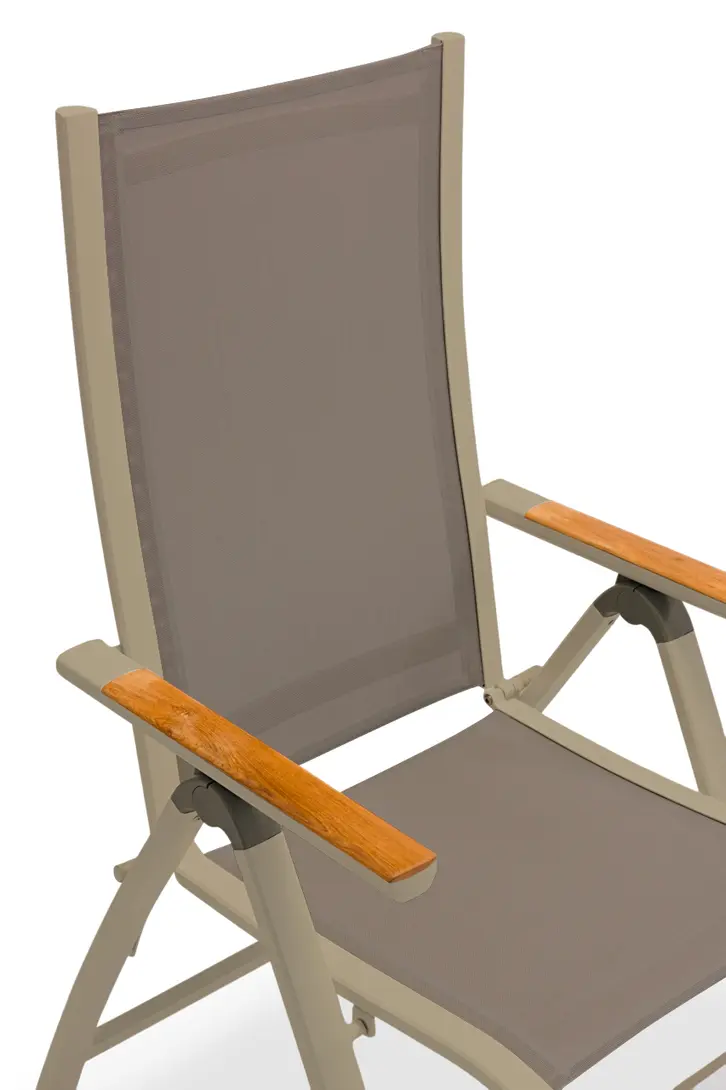 Сертифицированный тик. Каждая деталь имеет современную эстетику и превосходный комфорт для сидения. Спинка регулируется, складные. В комплекте 6 кресел с тиковыми подлокотниками.