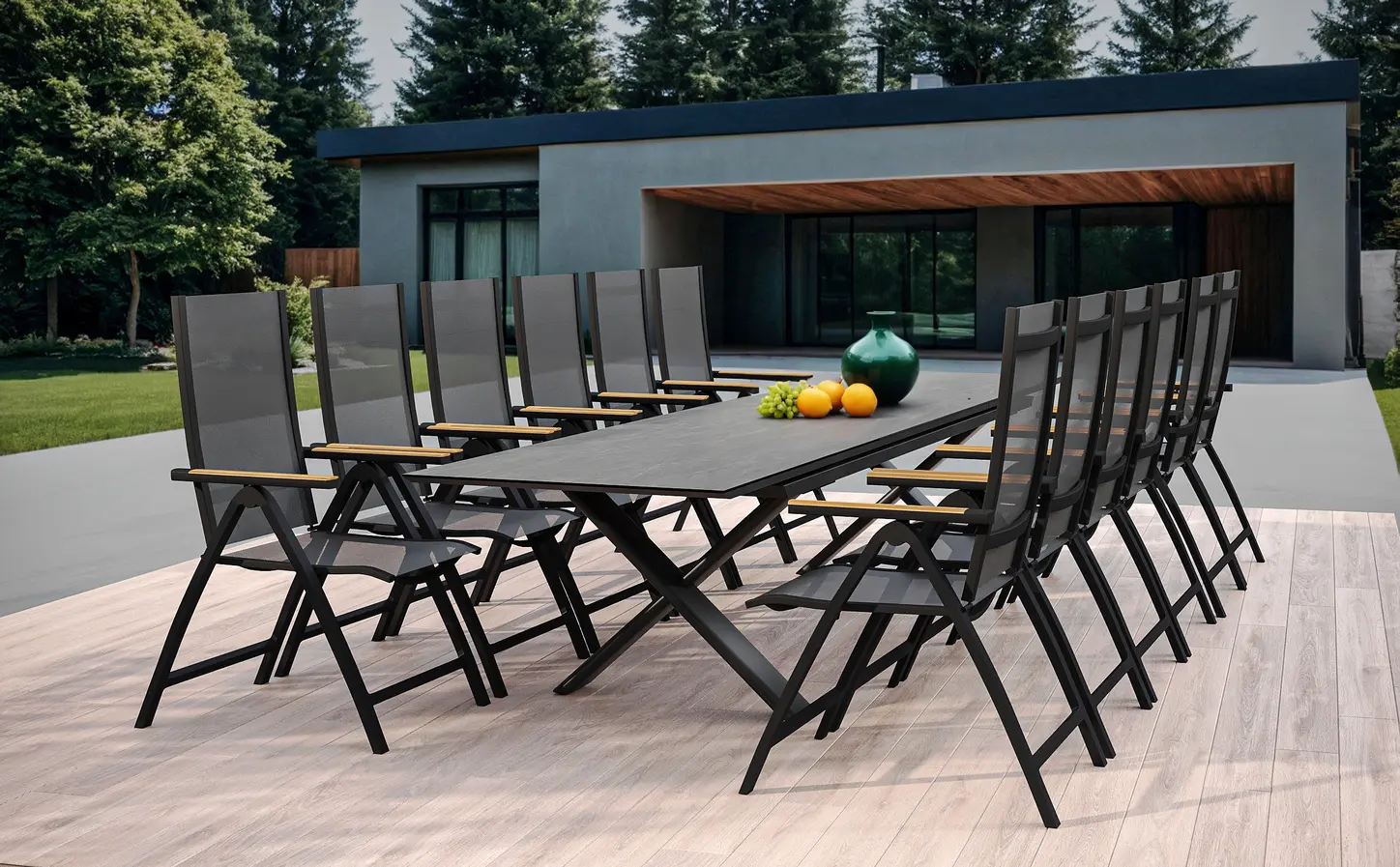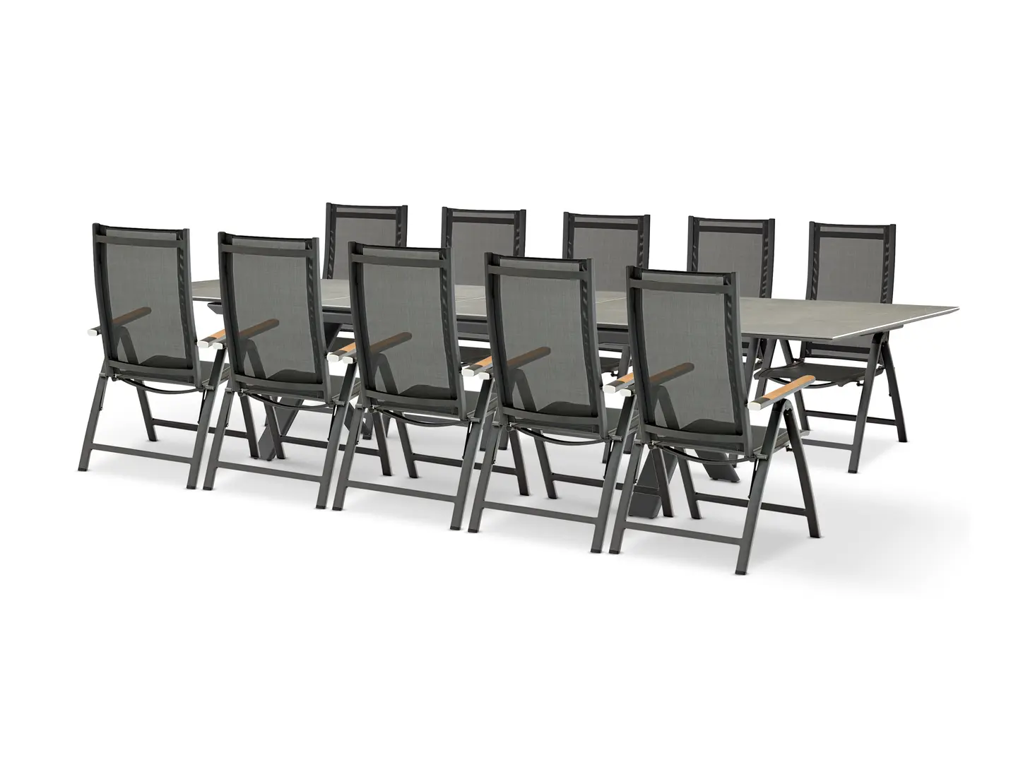 Timra - это роскошные столы со столешницей из спеченного камня. Спеченный камень — это новейший продукт современных инноваций, он изготовлен из порошка натурального камня. Таким образом, столешница очень прочная. Материал устойчив к атмосферным воздействиям, устойчив к царапинам и к экстремальным температурам.
