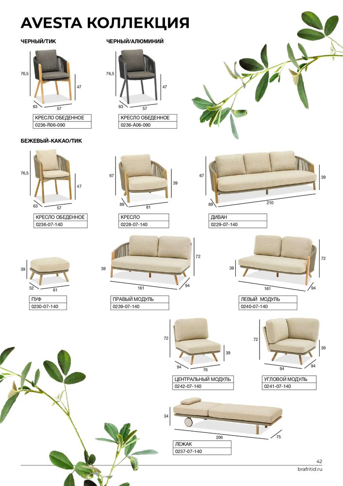 Алюминиевый каркас, тиковое дерево FSC + олефиновая веревка, подушка с наполнителем из пенополиуретана, солнцезащитная ткань.