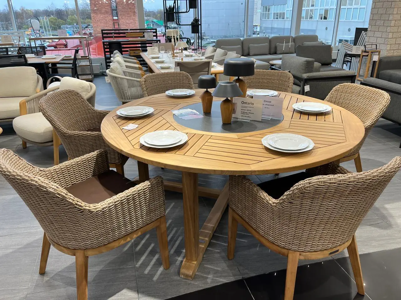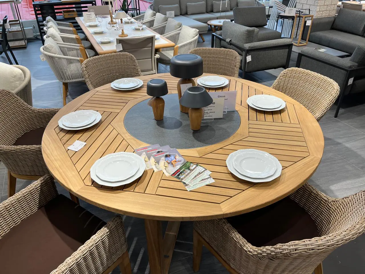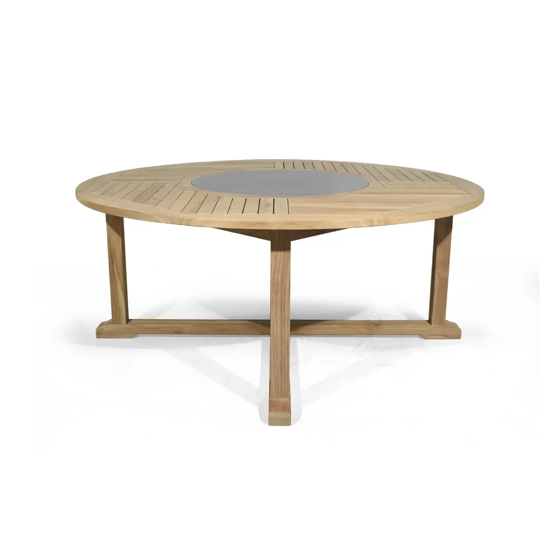 Отделка настолько качественная, что вы можете провести по ней рукой, и она кажется цельным куском дерева. Circus — это деревенские тиковые столы разных размеров. Поставляются в комплекте с гранитным сервировочным подносом (включая поворотную фурнитуру). Тик премиального качества.