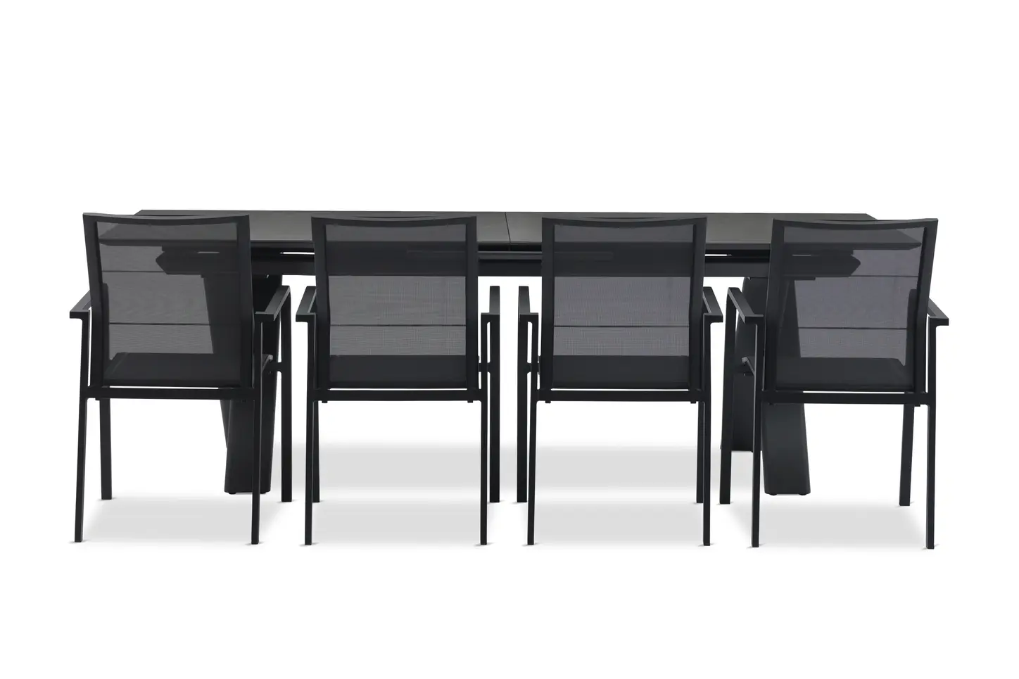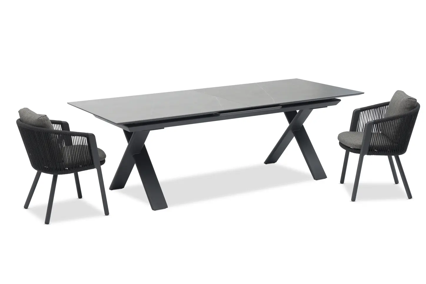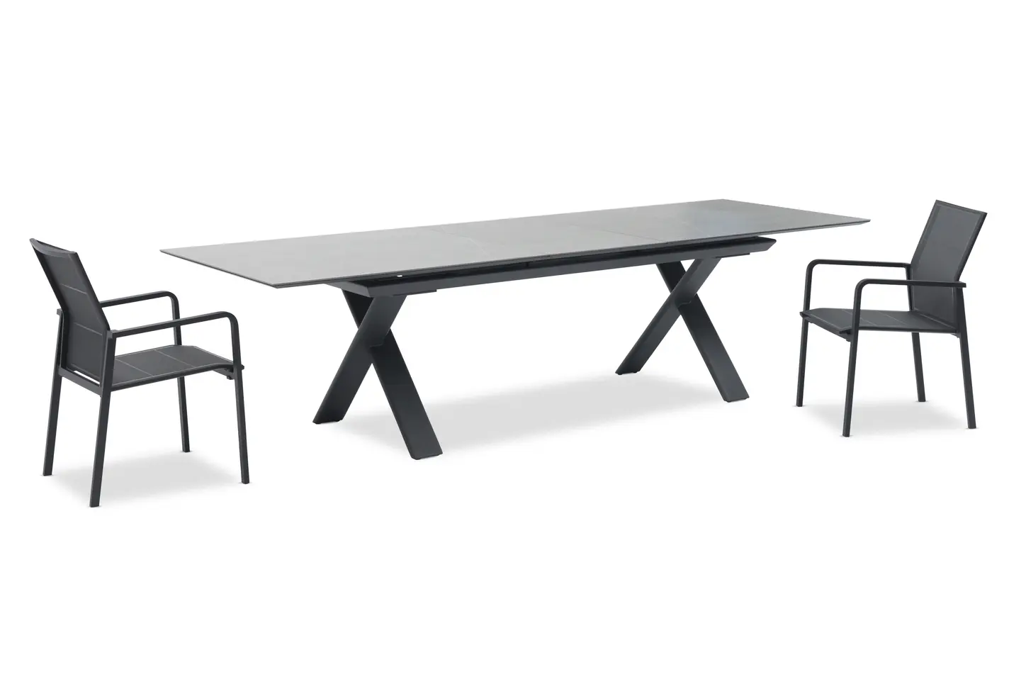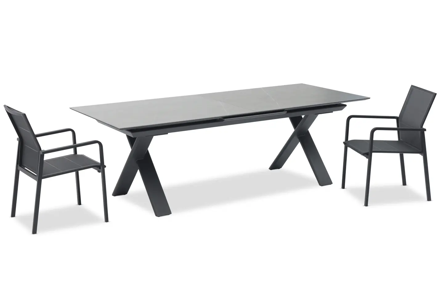 Timra - это роскошные столы со столешницей из спеченного камня. Спеченный камень — это новейший продукт современных инноваций, он изготовлен из порошка натурального камня. Таким образом, столешница очень прочная. Материал устойчив к атмосферным воздействиям, устойчив к царапинам и к экстремальным температурам.