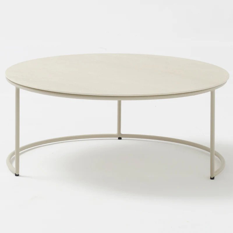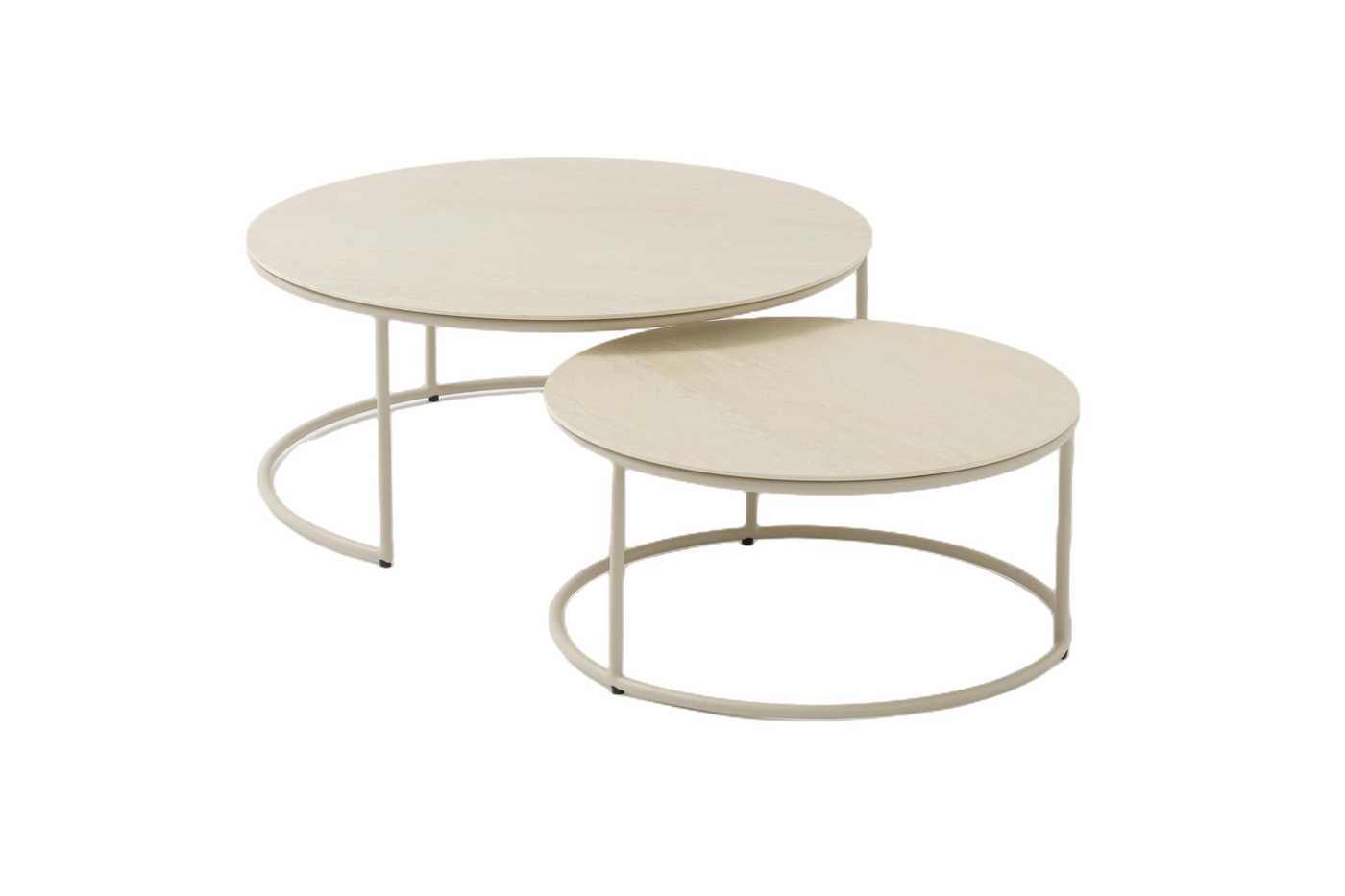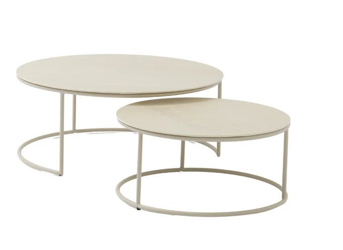 Комплект парных столиков из алюминия бежевого цвета с керамической столешницей. толщиной 6мм.