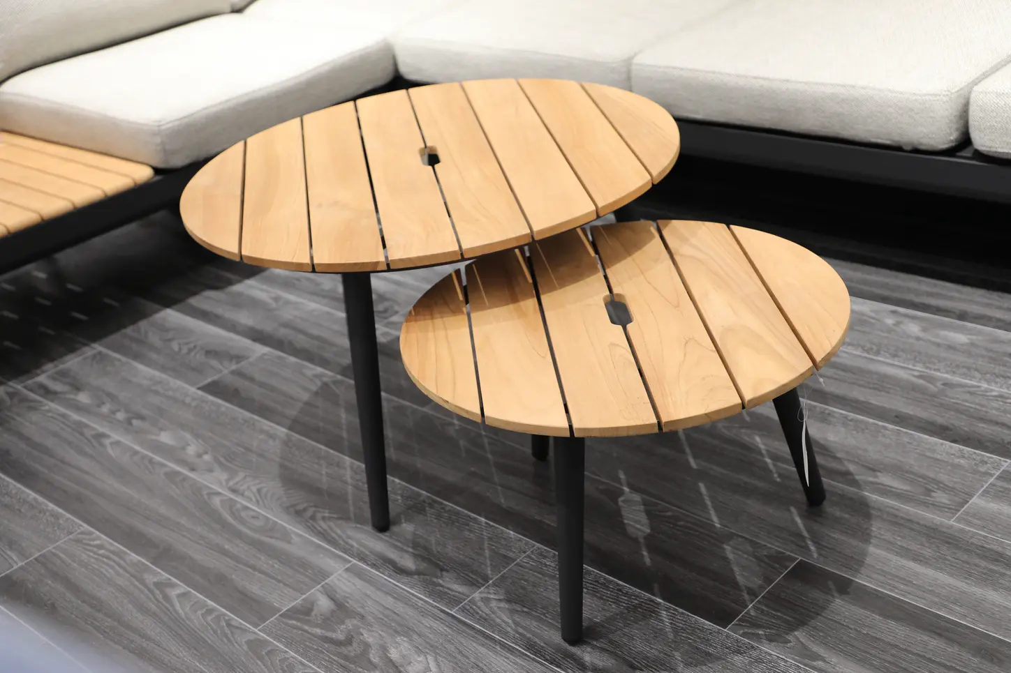 Marine — это красивые, удобные журнальные столики из натурального тика, которые прекрасно сочетаются друг с другом и доступны в двух разных версиях. Будьте гибкими и меблируйте по-современному — задвиньте маленький нижний столик под большой!