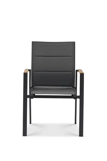 Современная коллекция, состоящая из штабелируемых стульев и лежаков. Каждая деталь имеет современную эстетику, стильные детали на ножках и рамах, а также превосходный комфорт для сидения. Тиковые подлокотники. Плотная обивка.