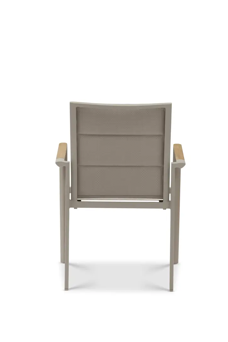 Современная коллекция, состоящая из штабелируемых стульев и лежаков. Каждая деталь имеет современную эстетику, стильные детали на ножках и рамах, а также превосходный комфорт для сидения. Тиковые подлокотники. Плотная обивка.