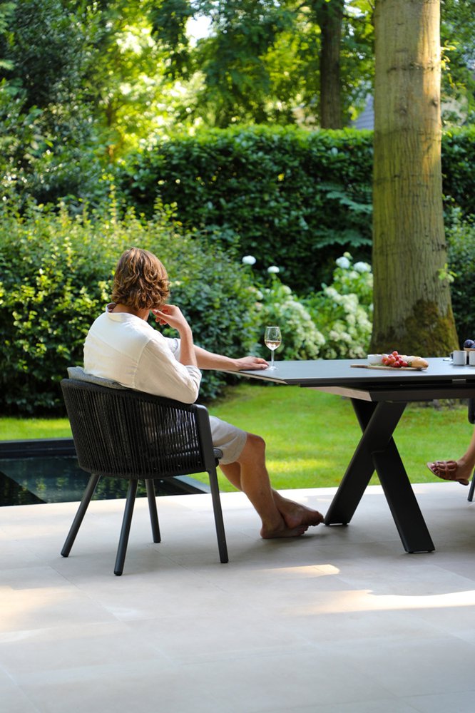 Алюминиевый каркас спинки сиденья кресла + олефиновая веревка, подушка с наполнителем из пенополиуретана, солнцезащитная ткань.