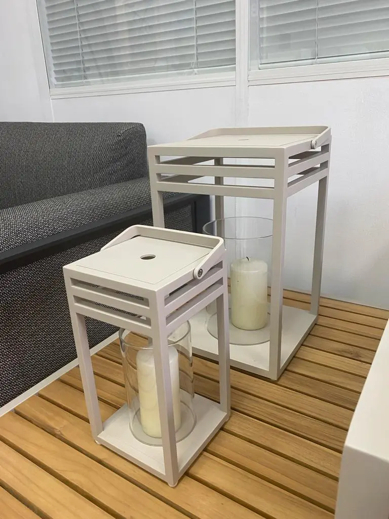 Фонарь из алюминия в нашей серии Lycka. Доступен в нескольких цветах. Создаст уютную атмосферу в вашем патио или зимнем саду. Открывающаяся верхняя часть со стеклянным цилиндром внутри (диаметр 100 мм; толщина 2,5 мм; высота 160 мм), свеча не входит в комплект.
