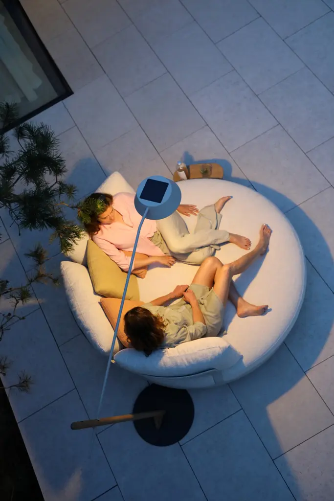 Поскольку торшер работает на солнечных батареях, он может светить до 12 часов, имеет три режима освещения, перезаряжаем и устойчив к атмосферным воздействиям.