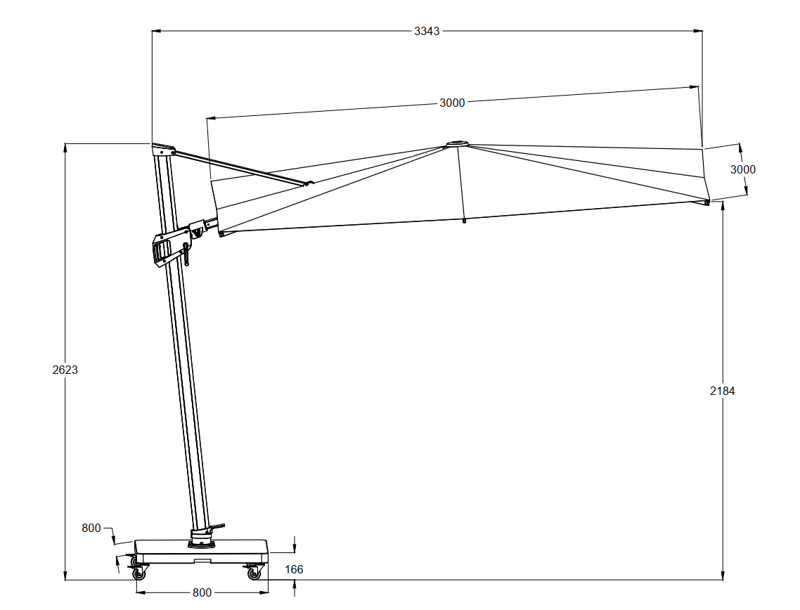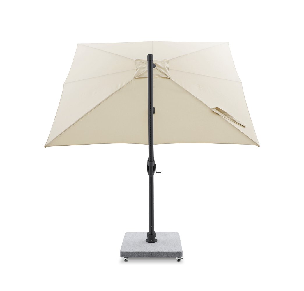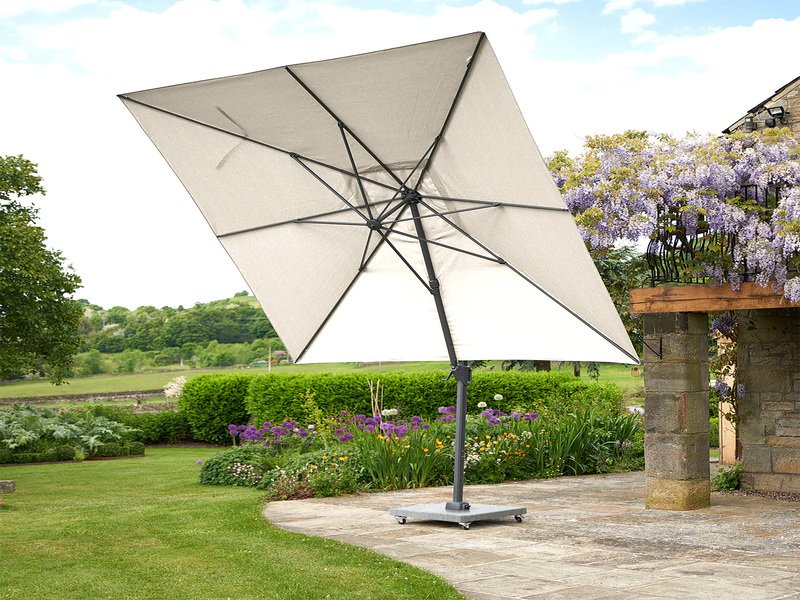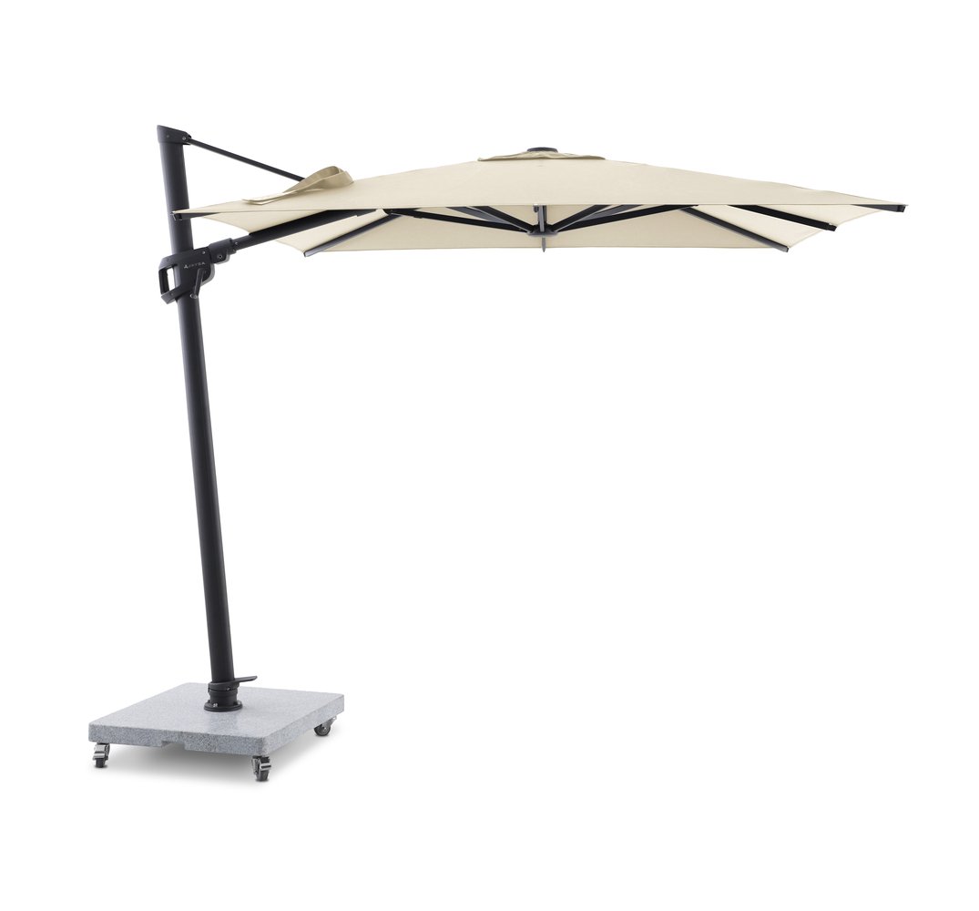 Основание зонта: гранит, вес- 130 кг, квадратная форма, размер: 80x80x6 см светло-серая полировальная поверхность, с колесами.