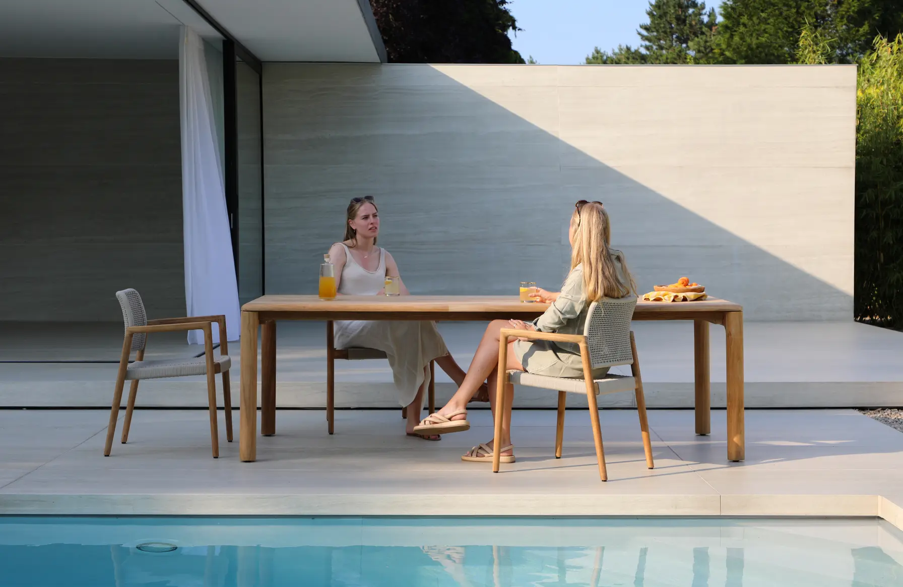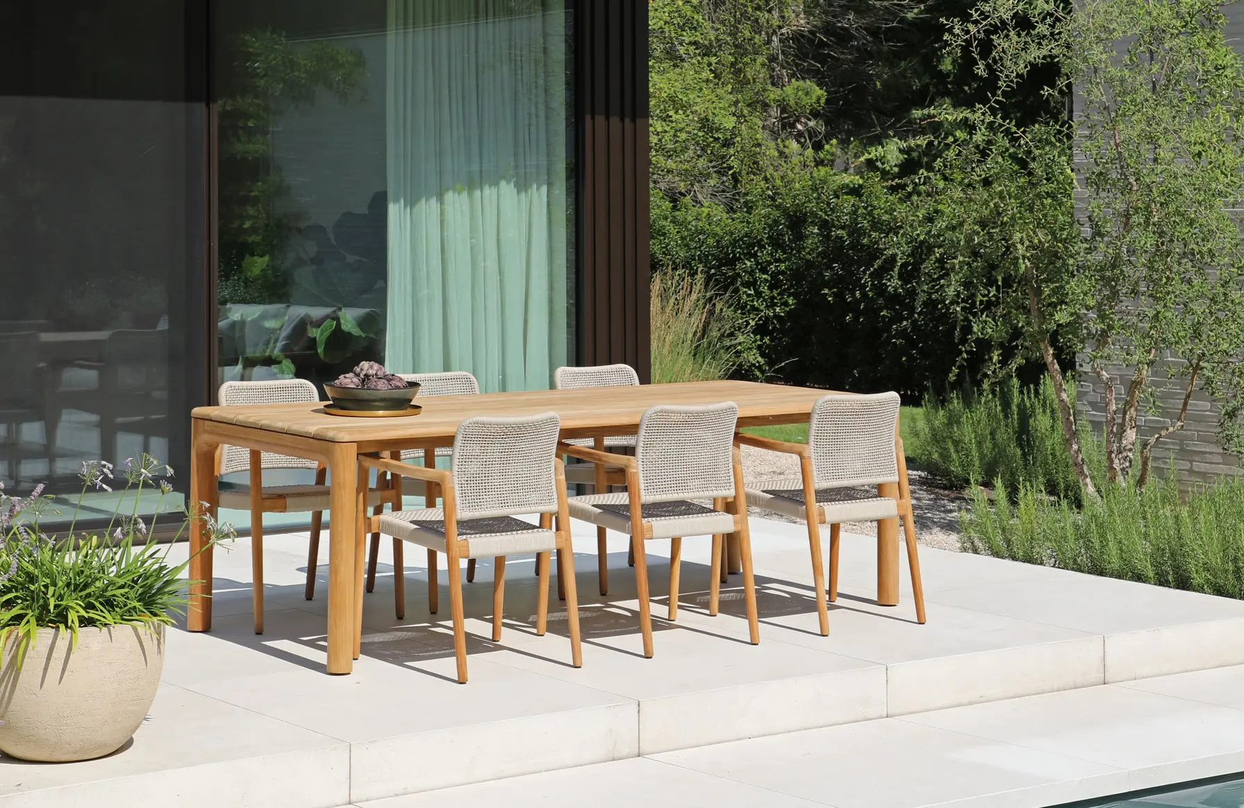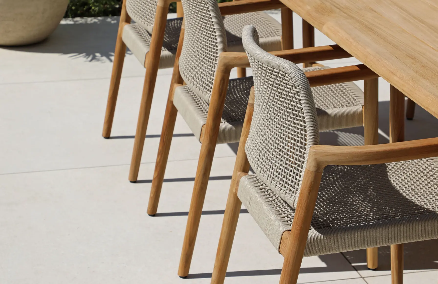 Коллекция из тика - это гармония природной эстетики и современного комфорта для стильных открытых пространств. Натуральный тик с его теплым оттенком и выразительной текстурой придает мебели ощущение уюта и премиальности. Лаконичные формы, мягко скругленные углы и продуманные пропорции создают универсальный дизайн, который органично впишется как в современную террасу, так и в классический сад.