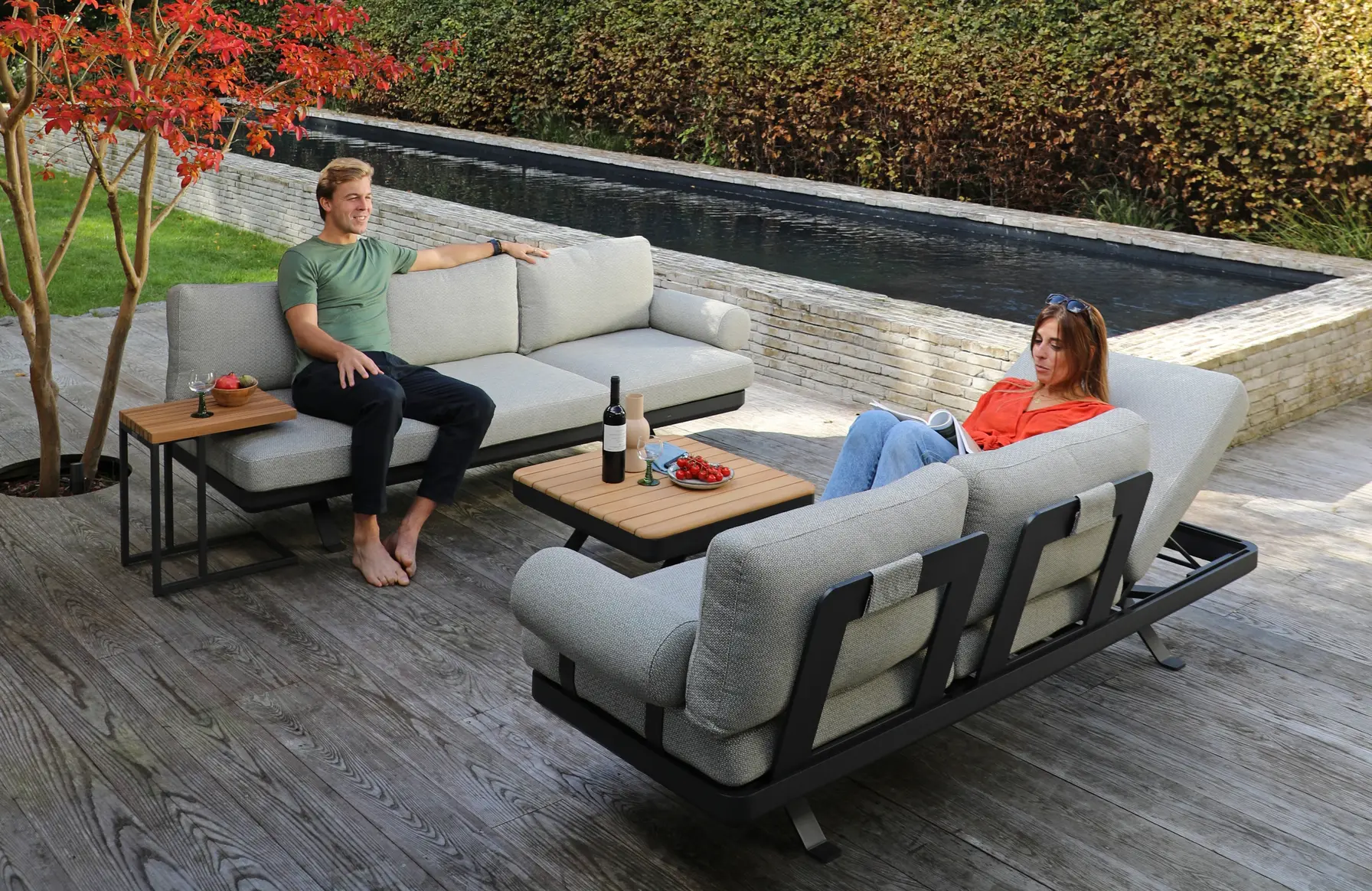 Базу можно использовать как шезлонг, как трехместный диван, или её можно совместить со вторым основанием для создания углового гарнитура для гостиной.