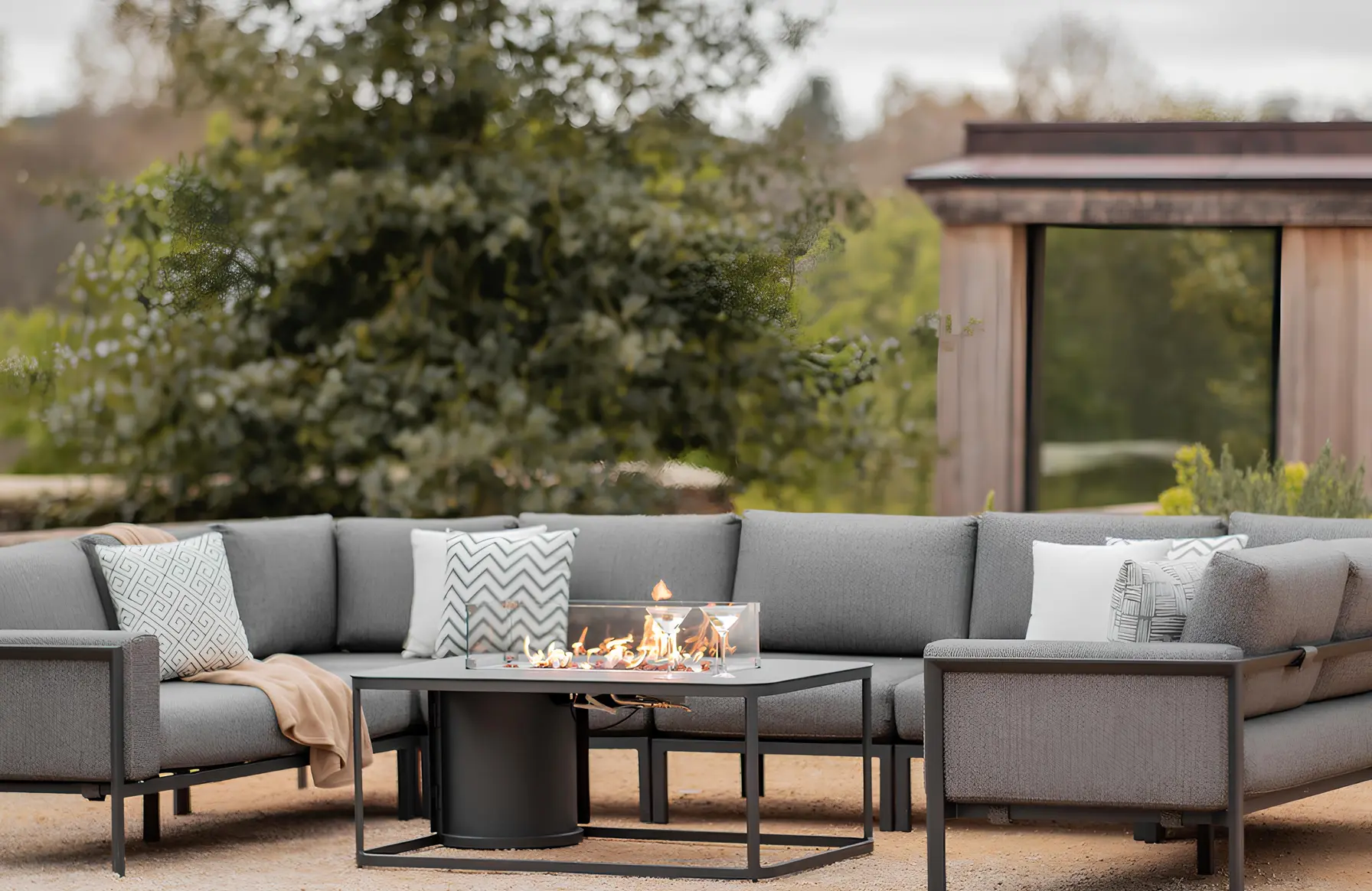 Комбинируйте прямые диваны, угловые и кресла, добавляя удобные пуфы и красивые столики разной формы.