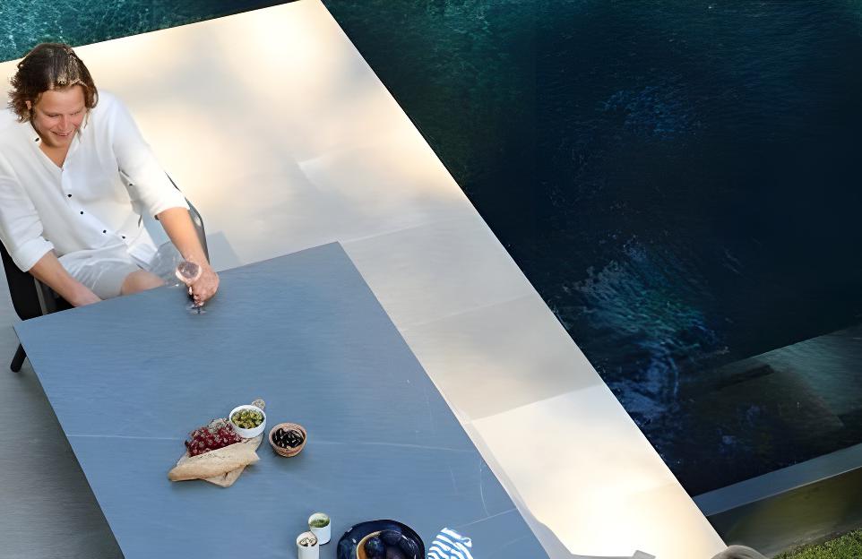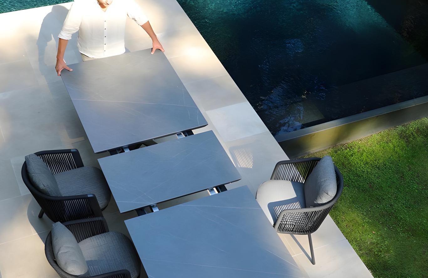 Timra - это роскошные раздвижные столы со столешницей из спеченного камня.