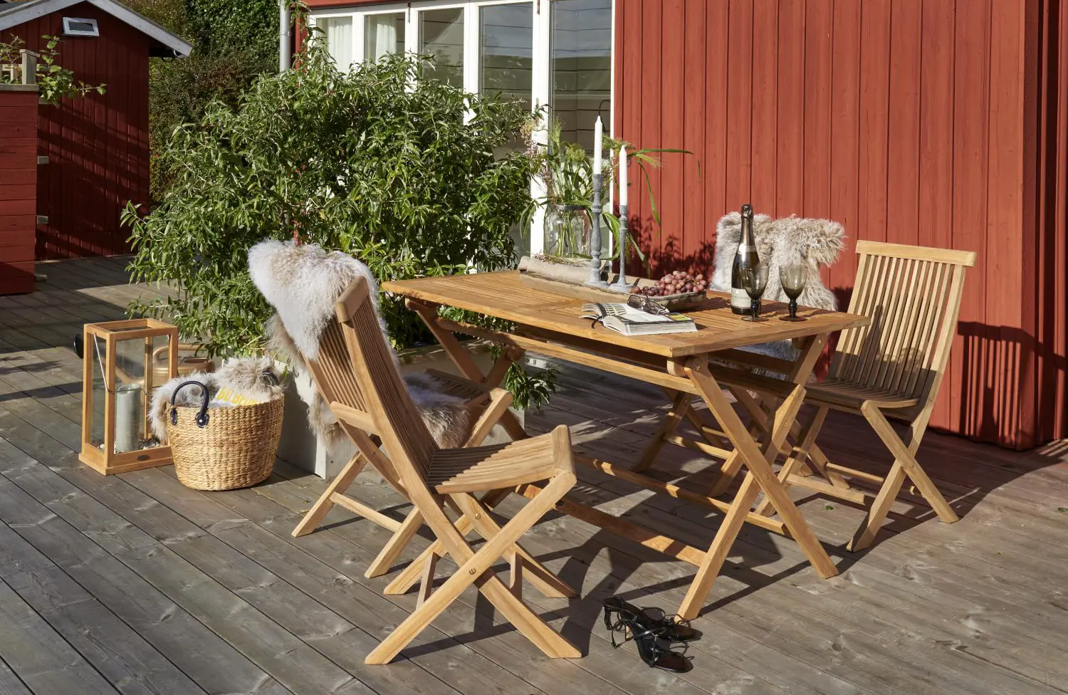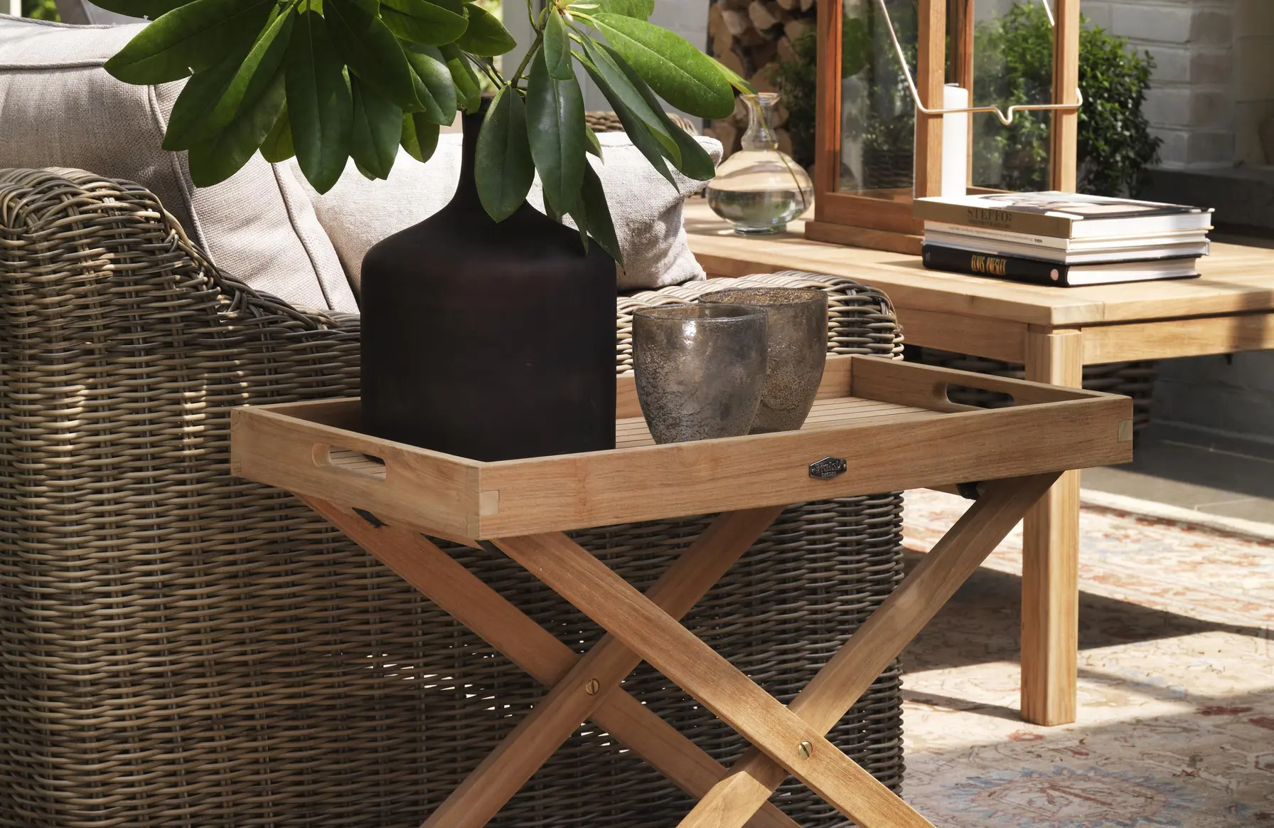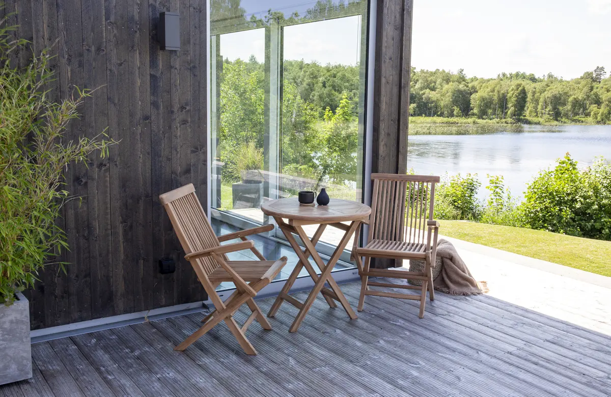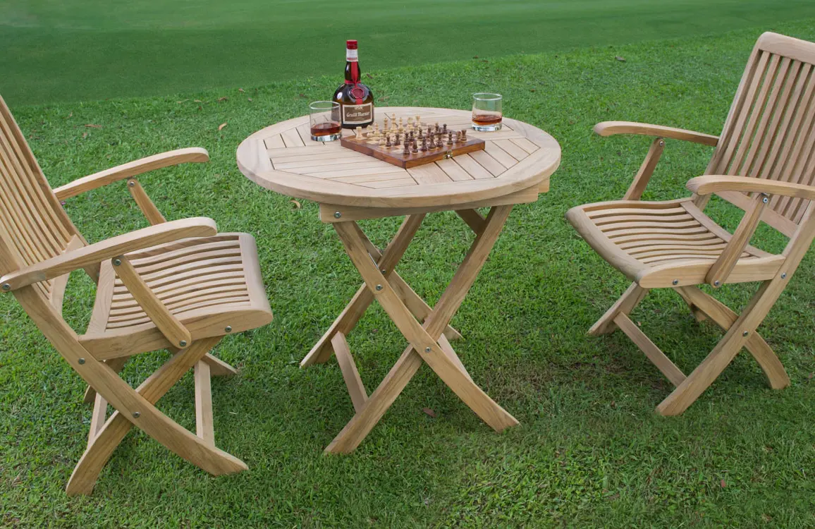 Все предметы этой серии из тика являются гибкими, складными и легко размещаемыми, что позволяет легко обставить даже небольшие помещения, например, балконы.