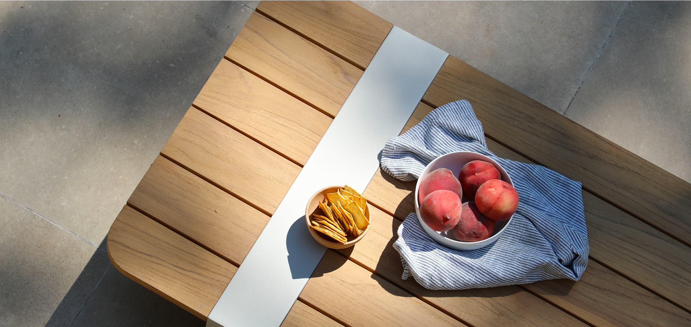 Для наилучшего препятствия внешним воздействиям и лучшей поверхности, все деревянные поверхности обрабатываются в три этапа: грунтовка, лазировка и финишное покрытие. Последний слой – это жидкость на водяной основе, которая не содержит органических растворителей. Все металлические элементы и вся стальная мебель гальванизированы, чтобы увеличить срок их службы.